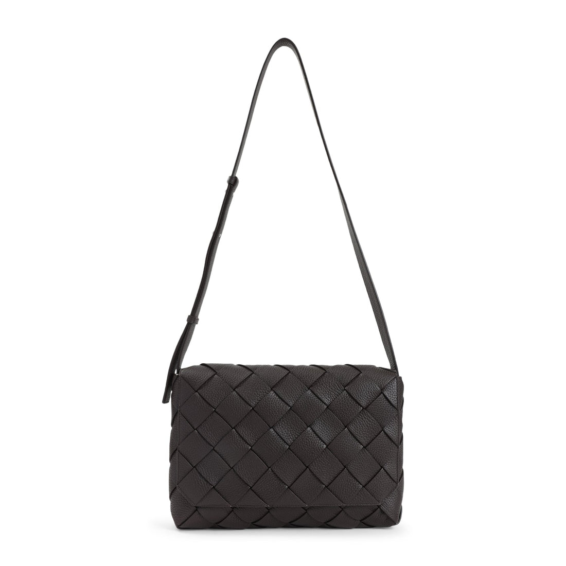 Intricate Intrecciato design Secure magnetic flap closure Convenient internal zippered pocket Adjustable leather shoulder strap...