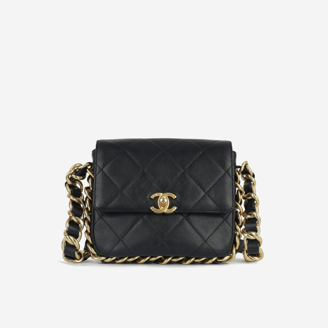 Classically crafted from black lambskin leather, this little beauty is an absolute necessity in any luxury handbag...