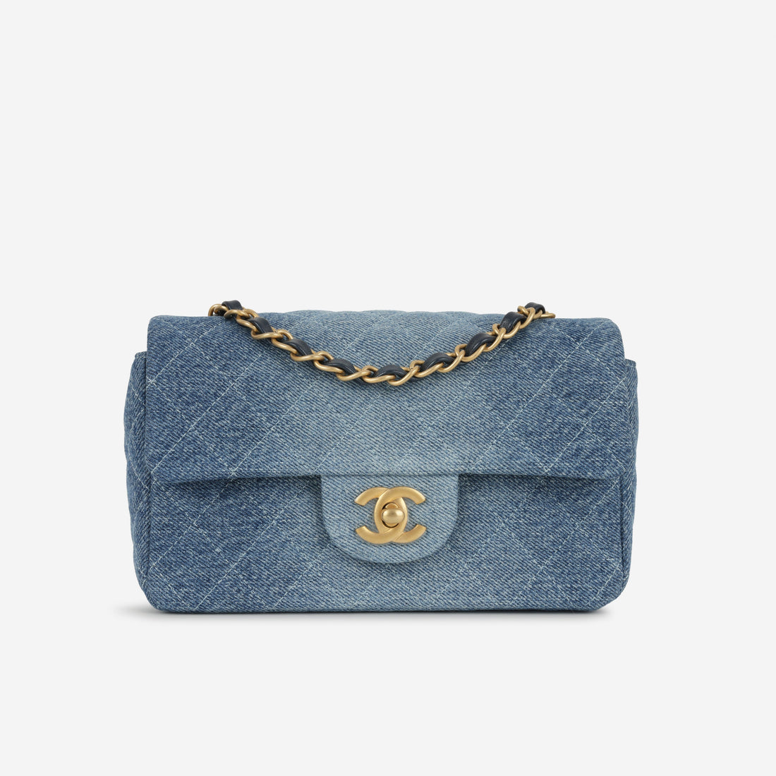 Chanel Mini Rectangular Blue Ombre Denim Gold Hardware