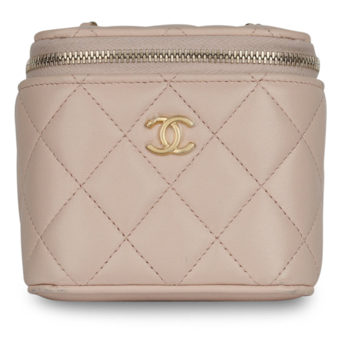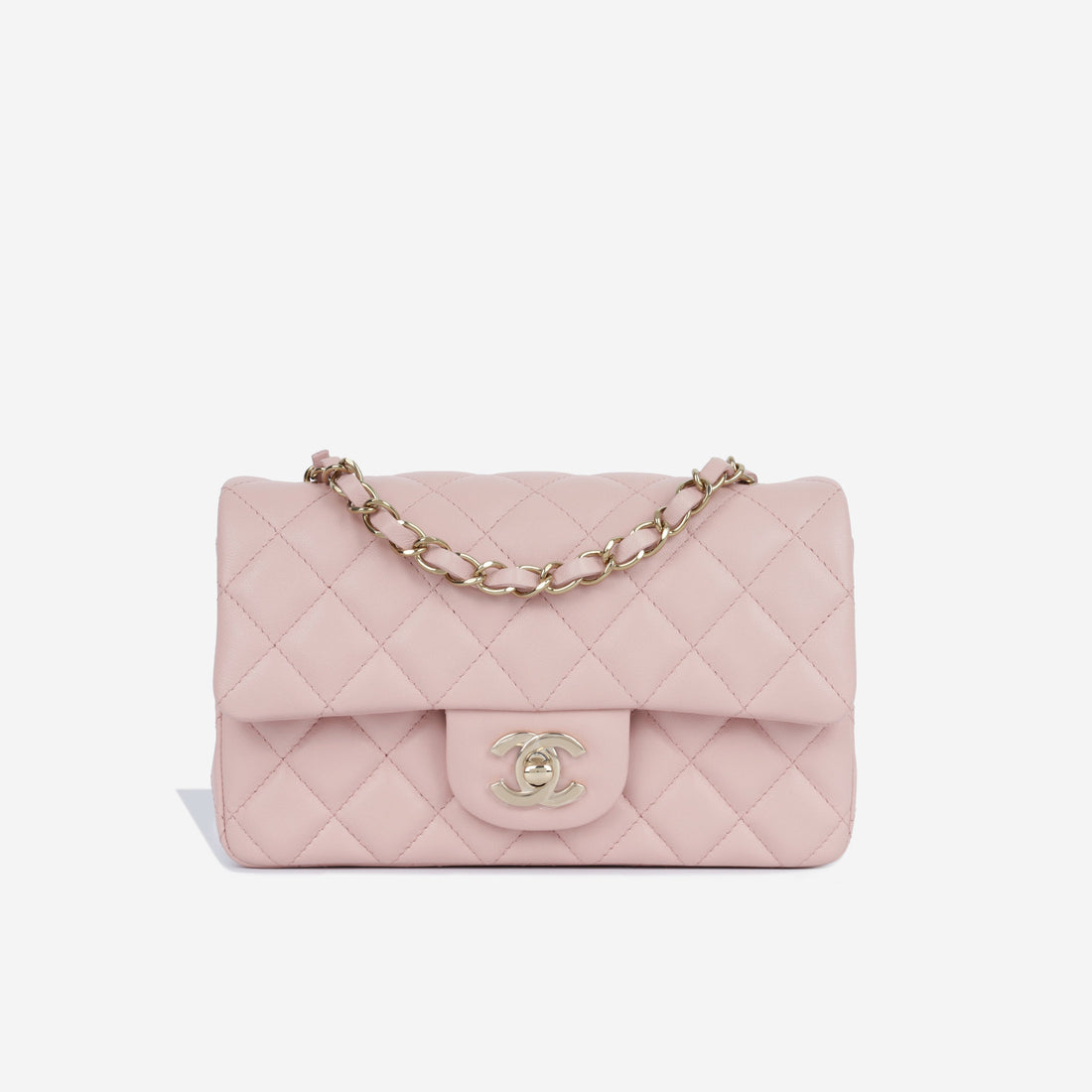 Carefully crafted from pink lambskin with chevron quilting, this little beauty is an absolute necessity in any luxury...