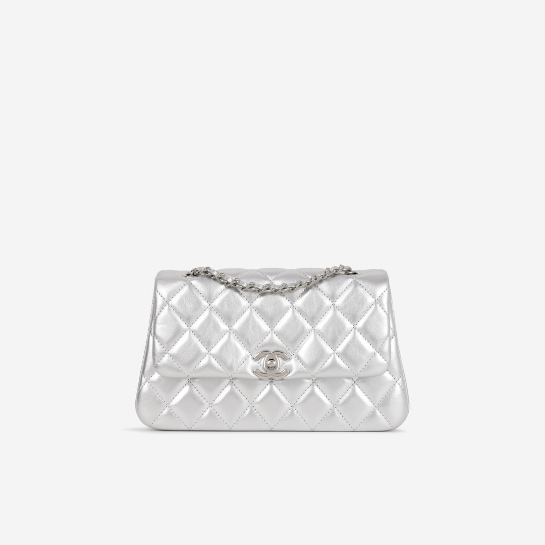 Chanel 25S Classic Flap Bag Silver Lambskin Silver Hardware