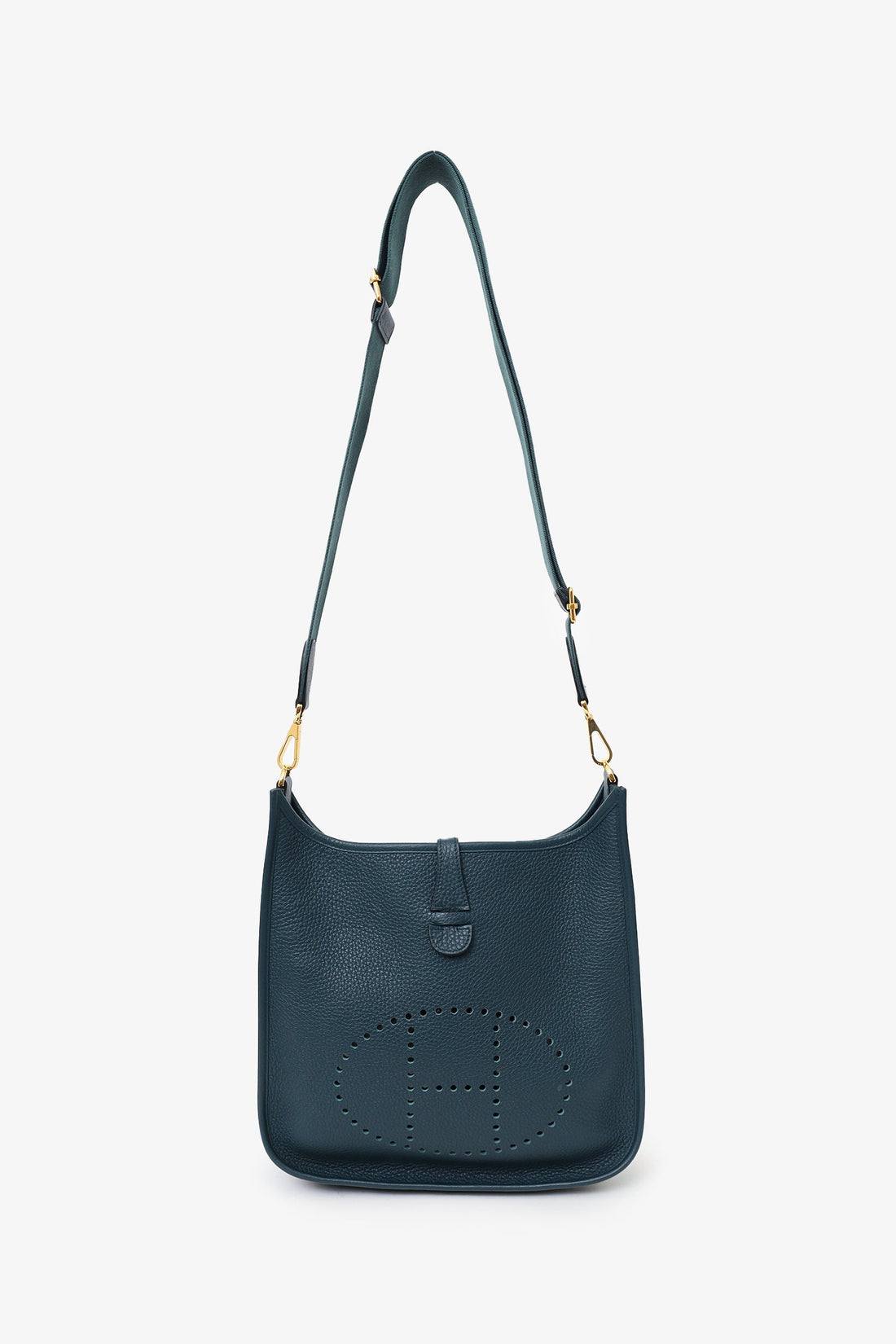 Hermès 2021 Vert Cypress Clemence Evelyne III 29. Removable front fold-over pull tab closure. Removable...