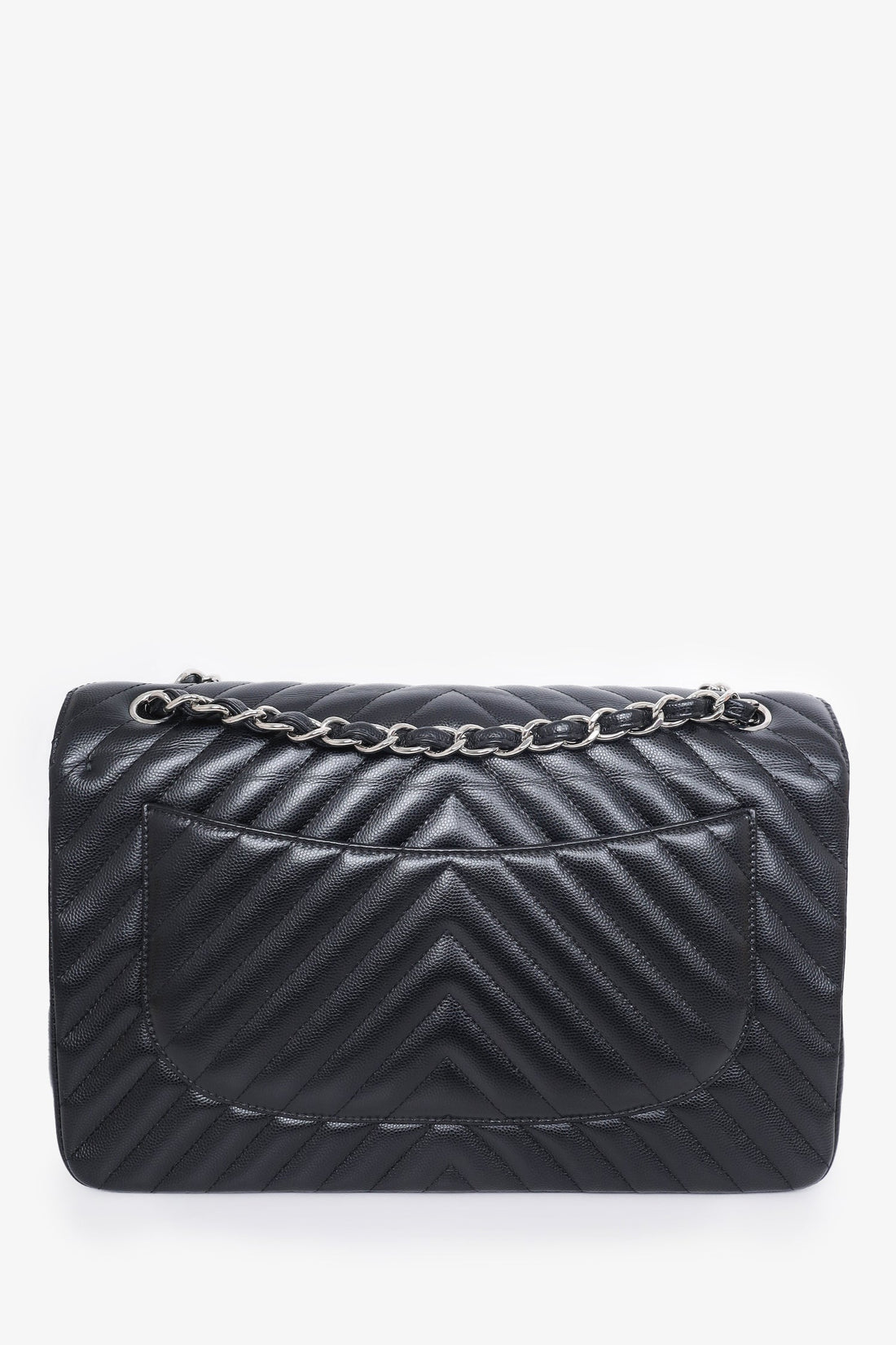 Pre-Loved Chanel™ 2016-17 Black Chevron Caviar Leather Jumbo Double Flap