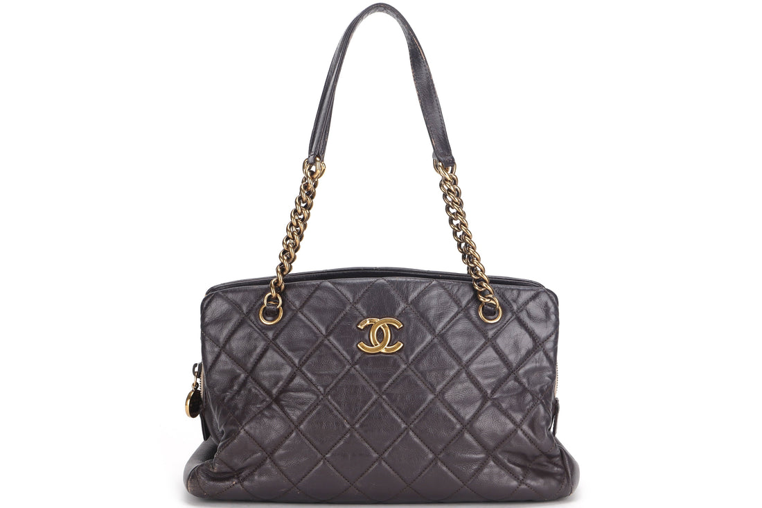 BRAND: CHANELMODEL: QUILTED MATELASSE CC LOGO SHOULDER BAG (1739xxxx)COLOR: DARK BROWN & GOLD COLORSIZE: ...