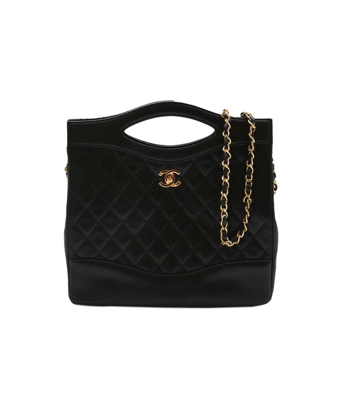 CHANEL VINTAGE 2WAY SHOULDER BAG BLACK LAMBSKIN 90239090