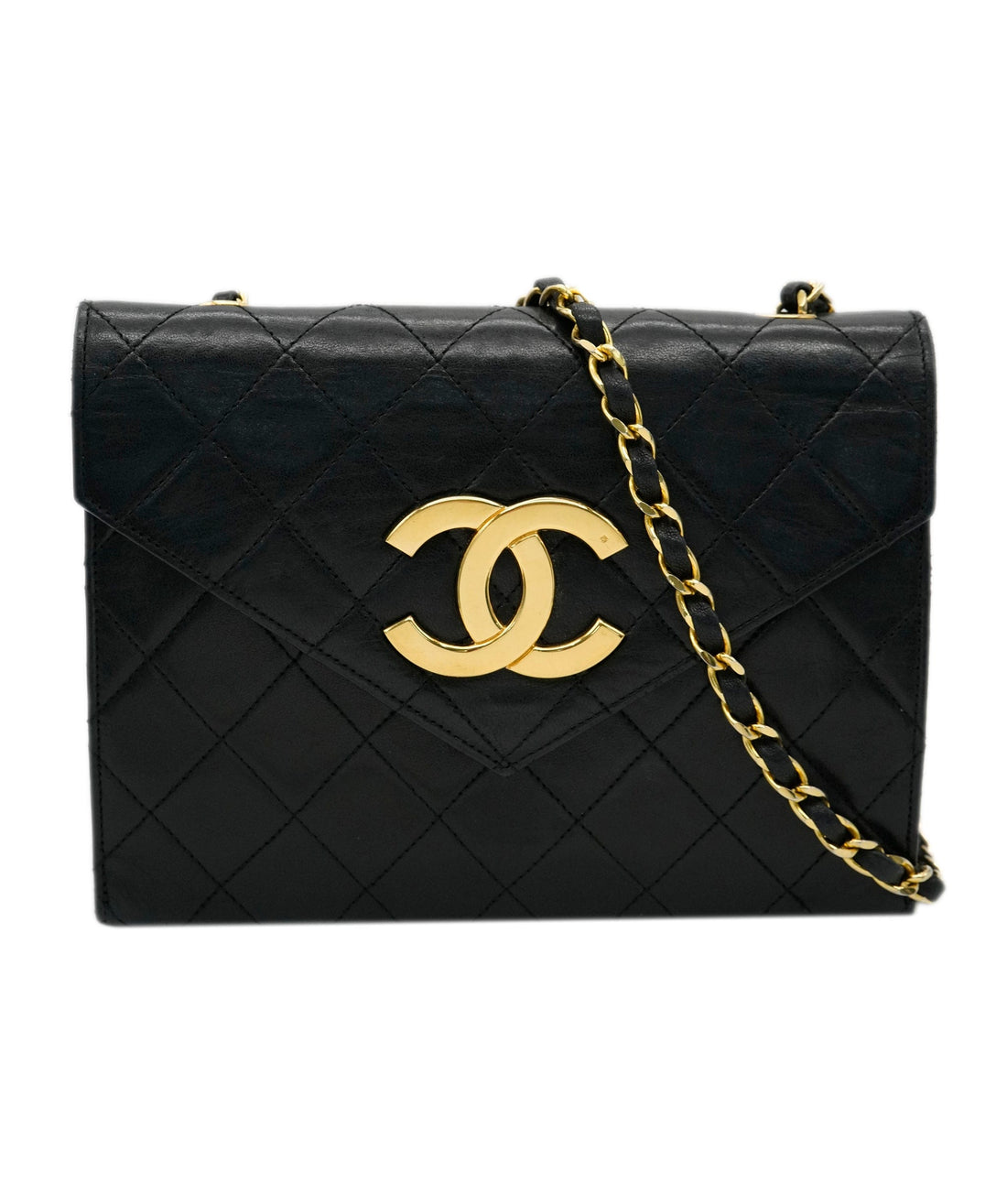CHANEL VINTAGE MATELASSE BIG COCO CHAIN SHOULDER BAG BLACK LAMB SKIN DBXS2161