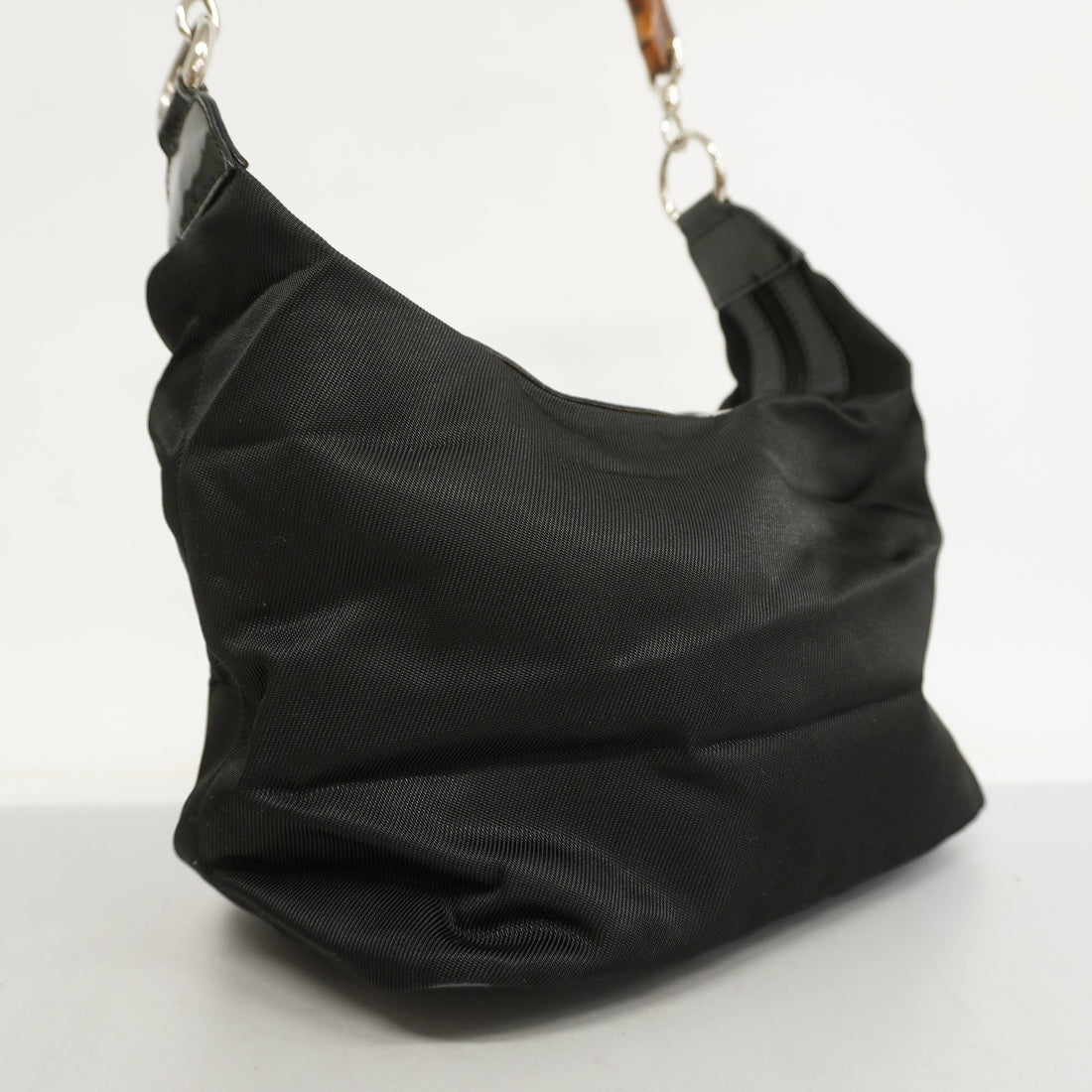 Gucci Bamboo Shoulder Bag 000 1998 0531 Women's Nylon Shoulder Bag Black