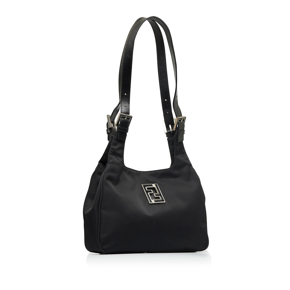 FENDIAuth FF Logo Women's Nylon Shoulder Bag Black
