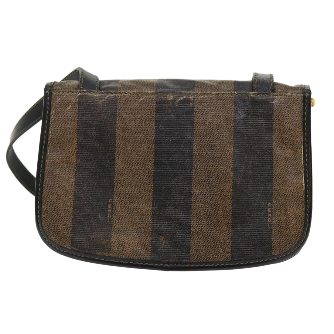 FENDI Pecan Canvas Shoulder Bag Black Brown Auth bs6553