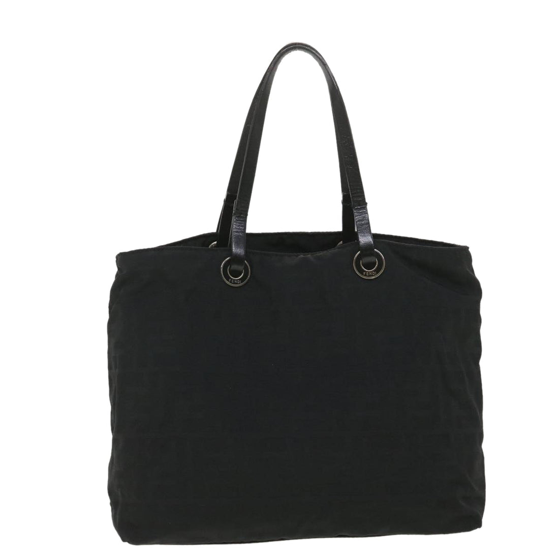 FENDI Zucchino Canvas Shoulder Bag Black 2288-8BT075-JQ5-088 Auth rd4687