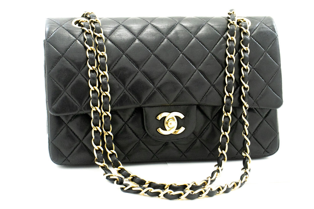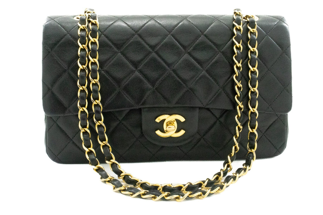 CHANEL Classic Double Flap Medium Chain Shoulder Bag Black Lamb k34