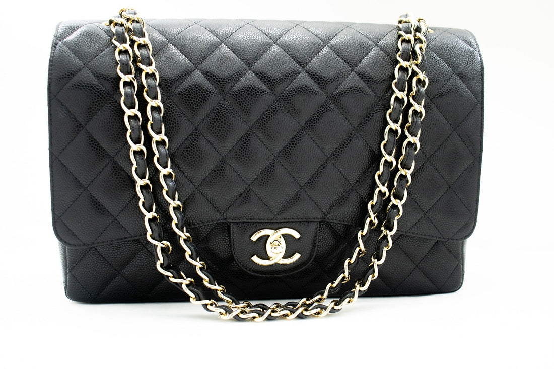 An authentic CHANEL Maxi Classic Handbag Grained Calfskin Double Flap Chain Shoulder Bag j17 This...