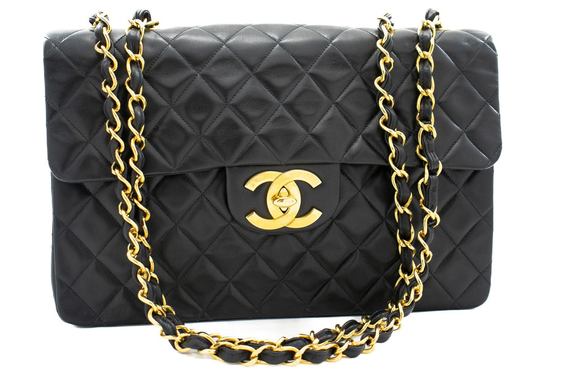 CHANEL Classic Large 13" Flap Chain Shoulder Bag Black Lambskin j56