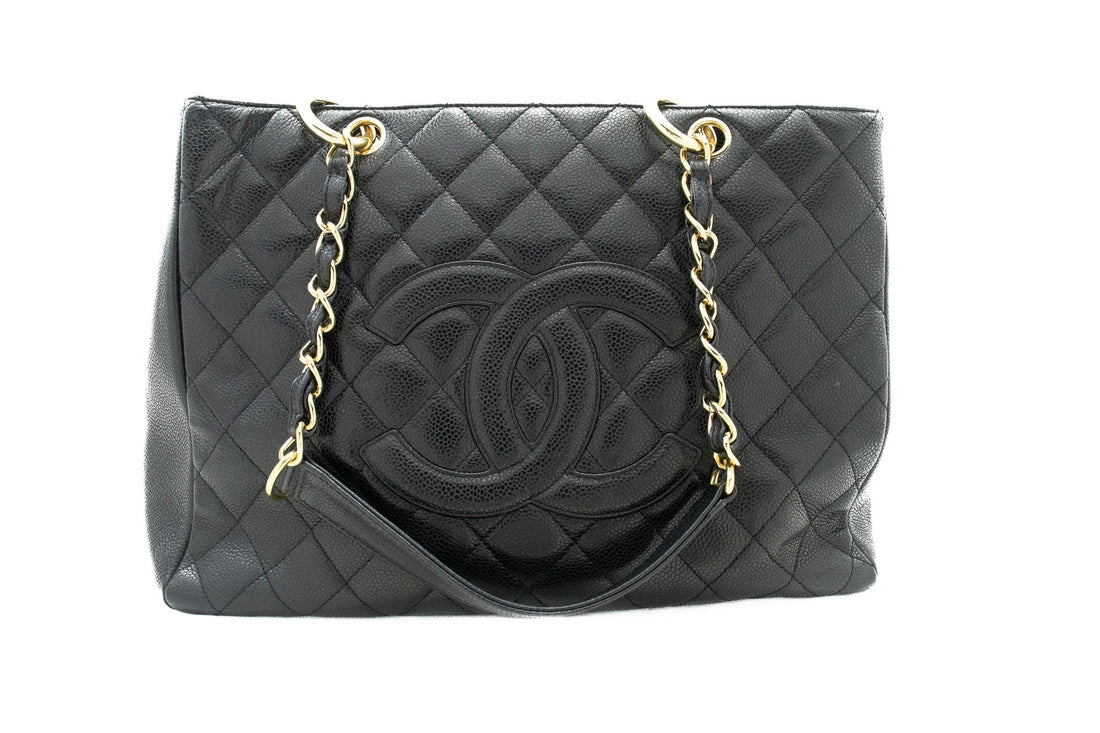 An authentic CHANEL Caviar GST 13" Grand Shopping Tote Chain Shoulder Bag Black j25 This...