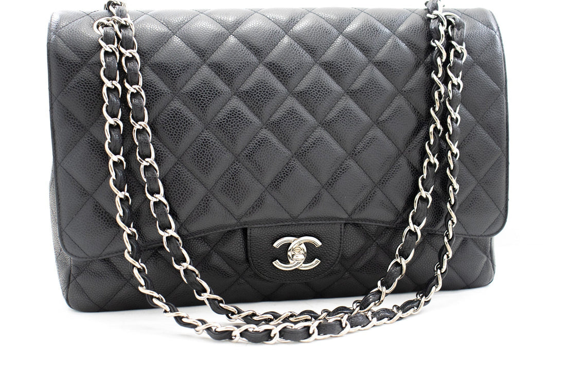 An authentic CHANEL Classic Large 11" Chain Shoulder Bag Black Grained Calfskin h58 This item...