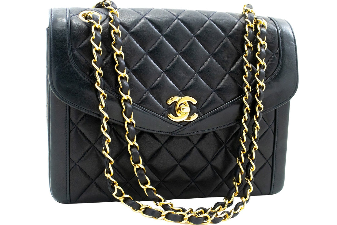 An CHANEL NAVY Vintage Chain Shoulder Bag made of black Lambskin Quilted New Purse. The...