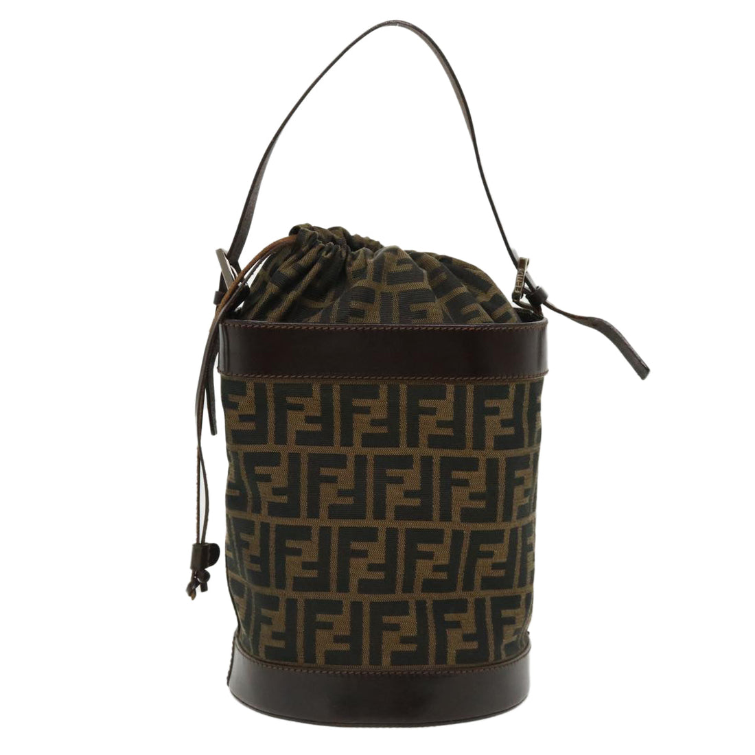 FENDI Zucca Canvas Shoulder Bag Cylindrical Brown Black Auth yk5779BRAND : FENDI Color : Brown...