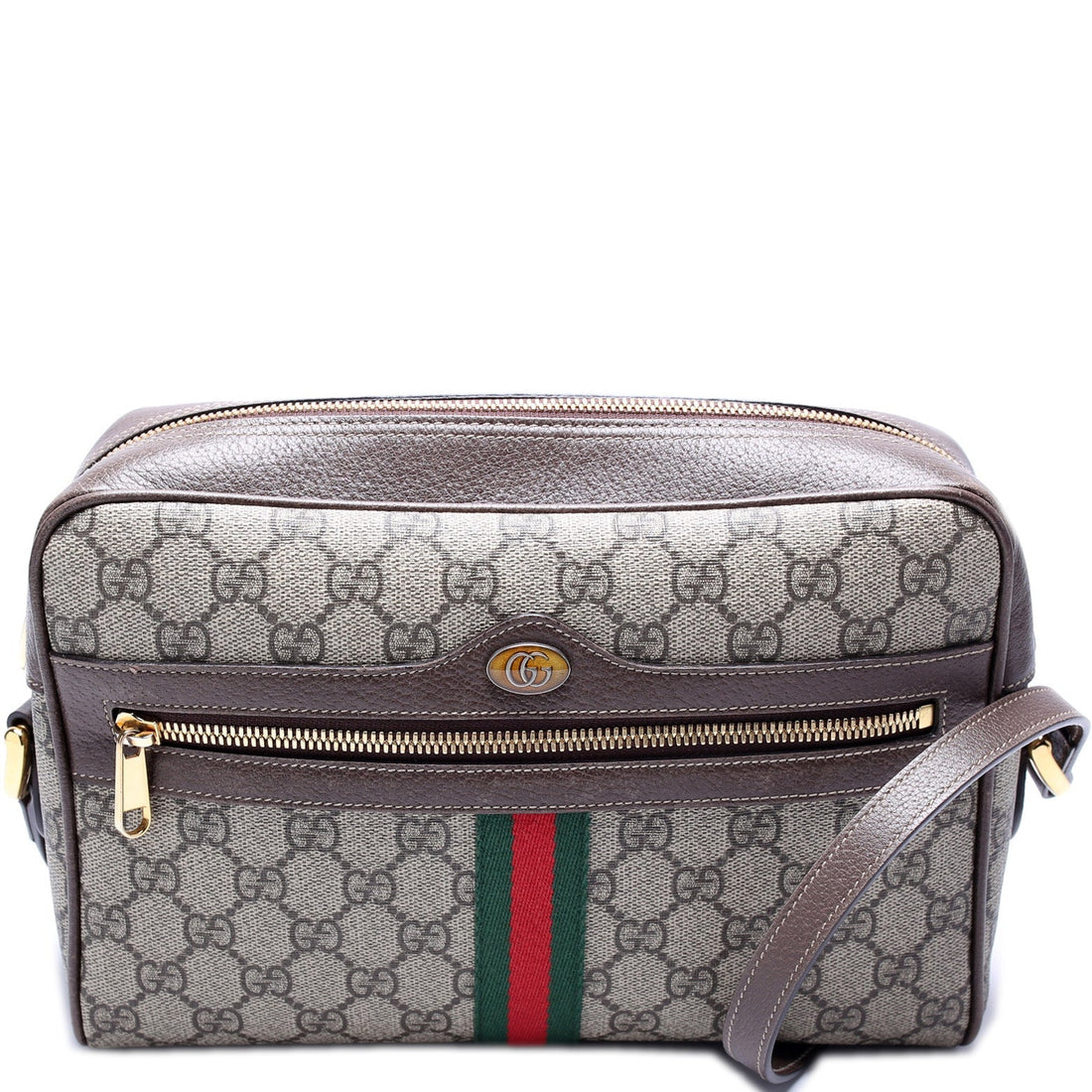 This Gucci Ophidia Crossbodyis eye catching bag. The exterior is in the classic Gucci GG Supreme...
