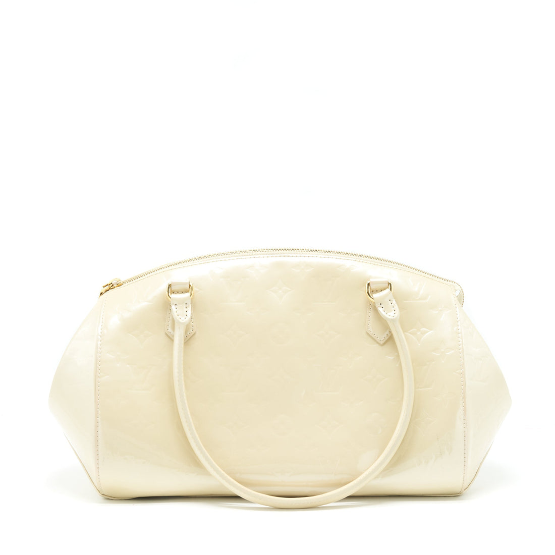 Louis Vuitton Vintage Bowling Tote Shoulder Bag Patent white GHW