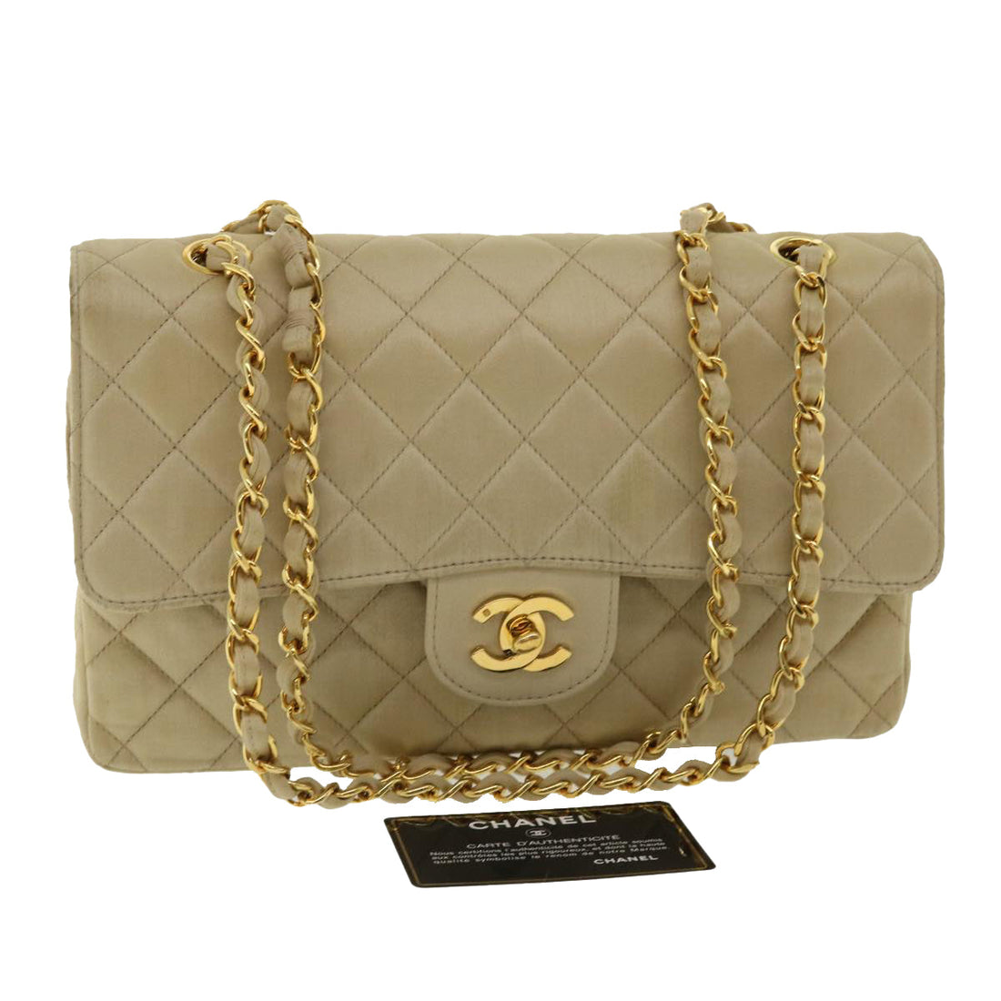 CHANEL Matelasse 25 Turn Lock Chain Shoulder Bag Satin Beige CC Auth 32604BRAND : CHANEL...