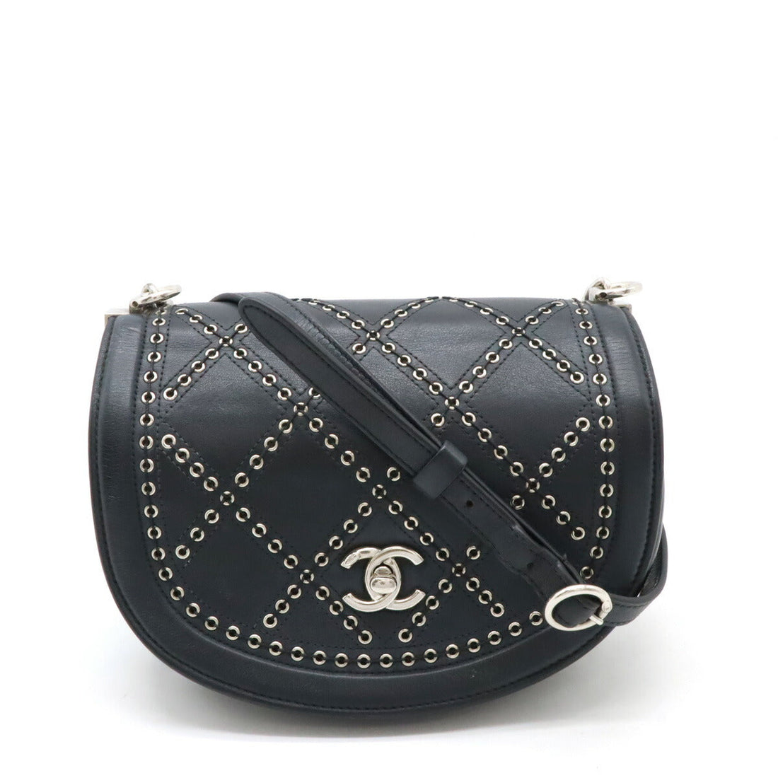 Chanel Leather Coco Eyelet Coco Mark Round Mini Chain Shoulder Bag A69993