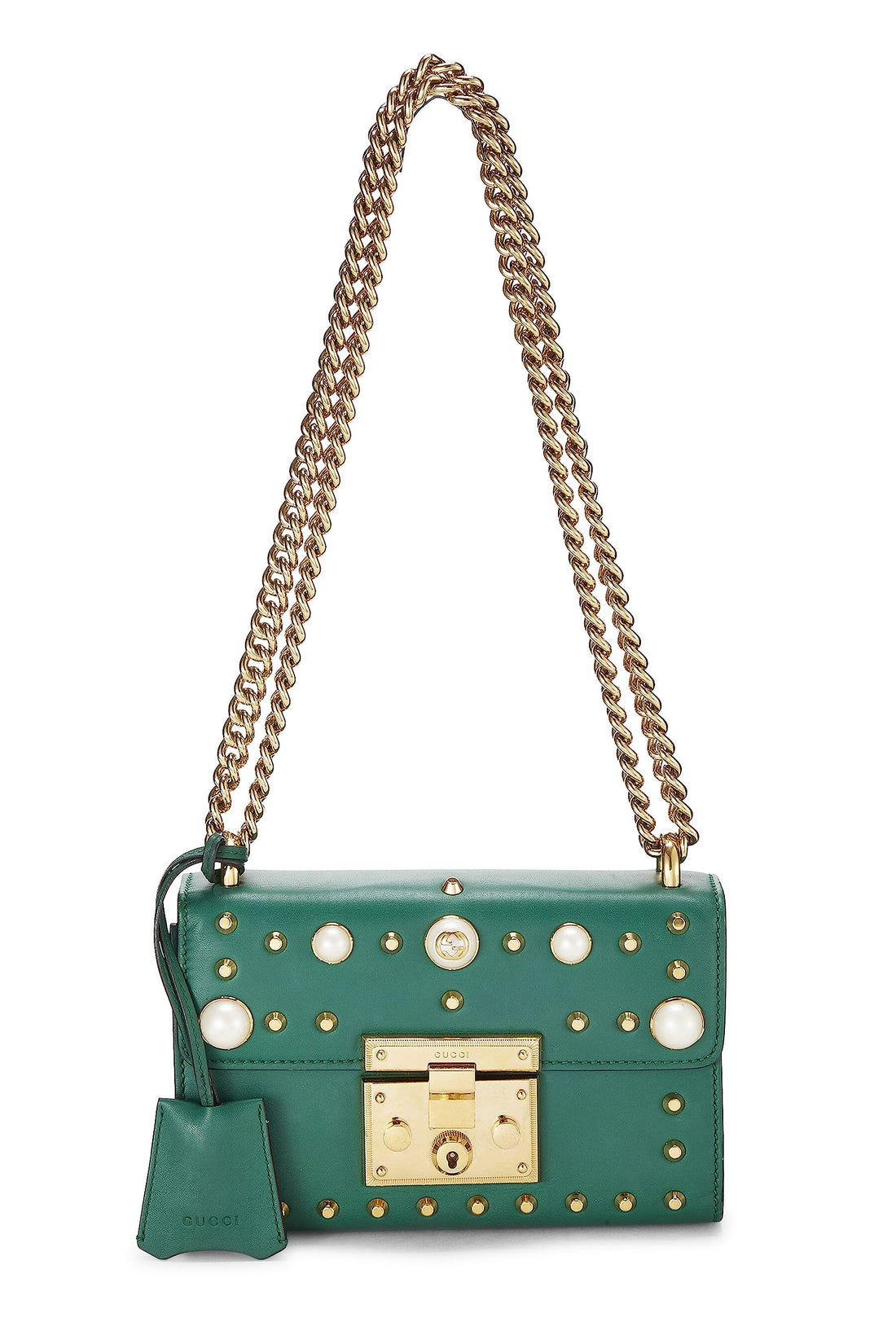Gucci, Green Leather Studded Padlock Shoulder Bag Small, Green