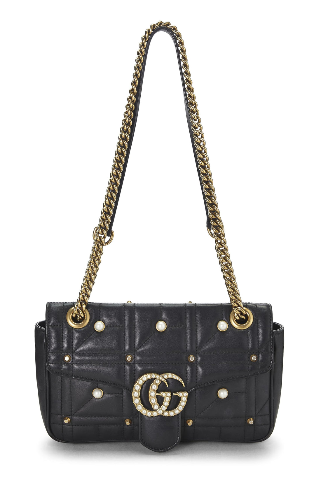 Gucci, Black Faux Pearl Matelassé Leather Marmont Shoulder Bag Small, Black