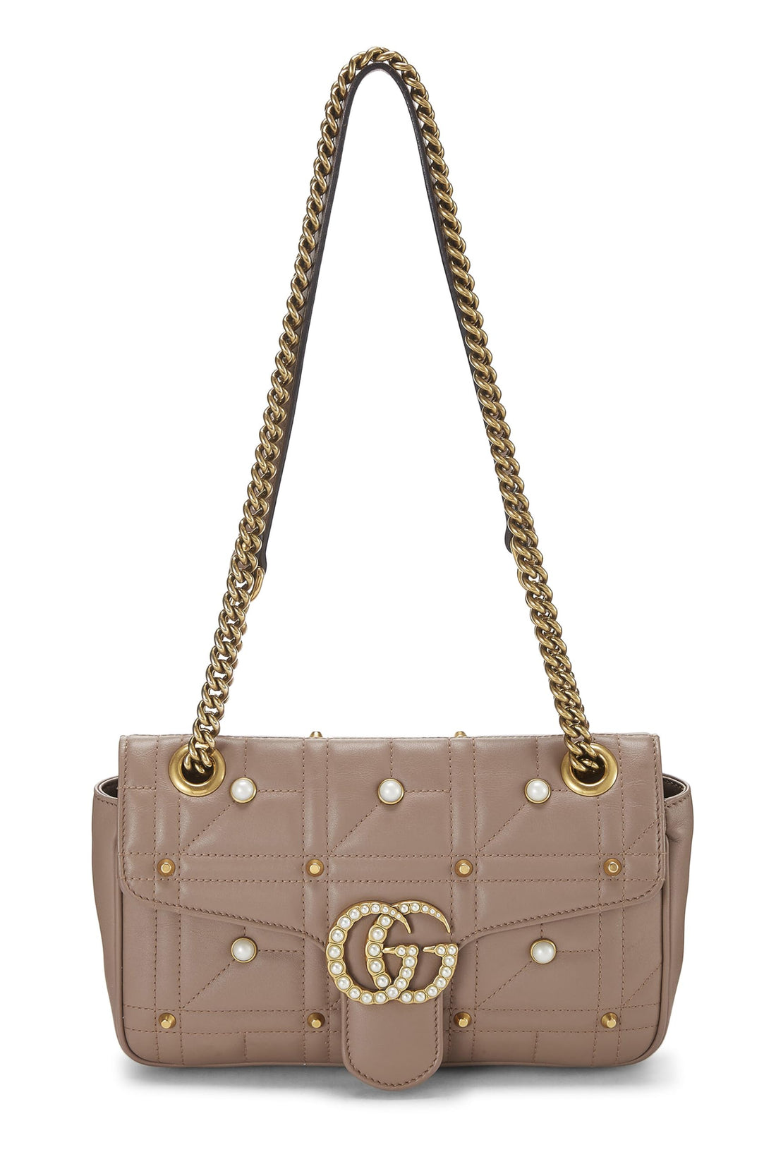 Gucci, Pink Leather & Faux Pearl GG Marmont Shoulder Bag Small, Beige