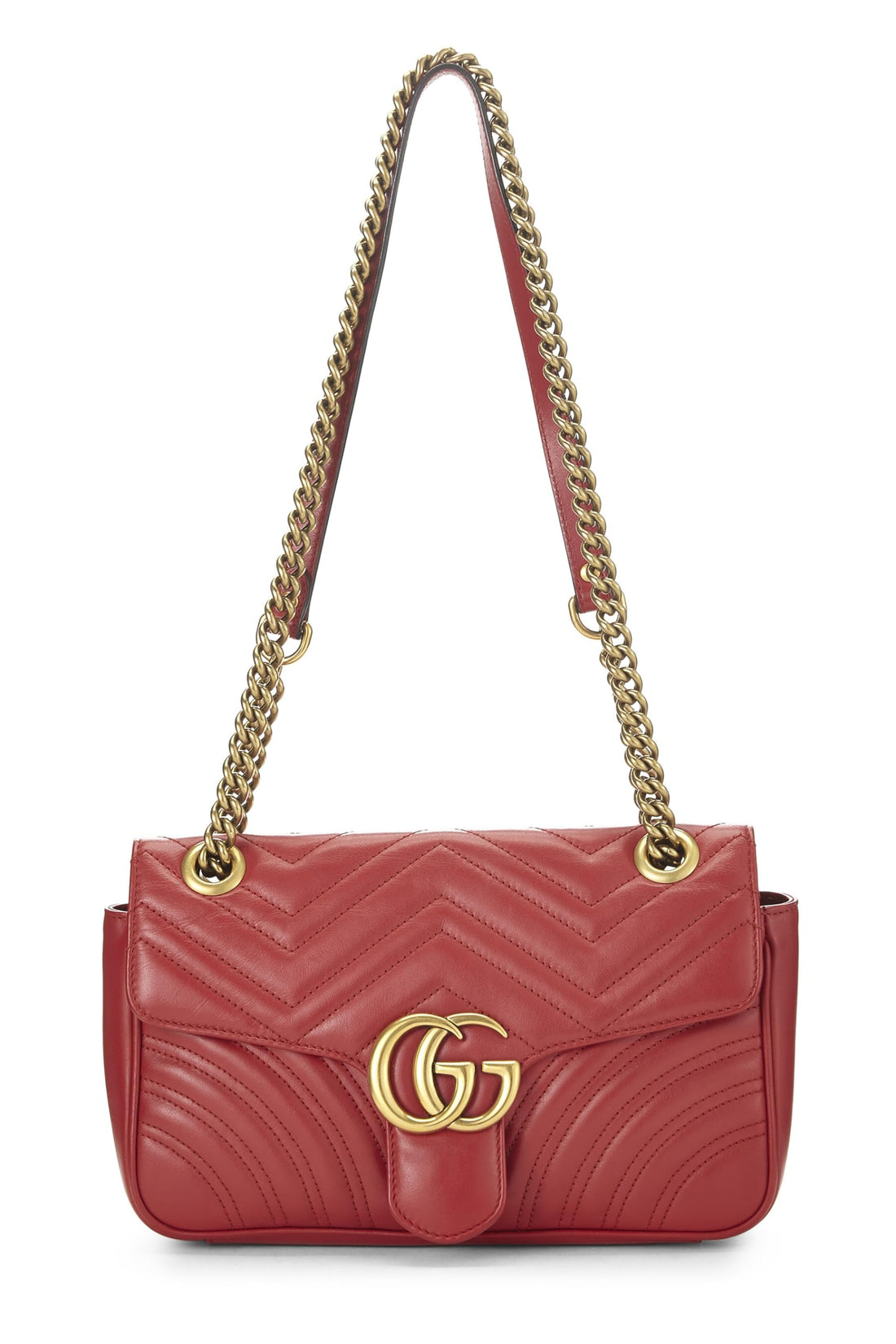 Gucci, Red Leather GG Marmont Shoulder Bag Small, Red