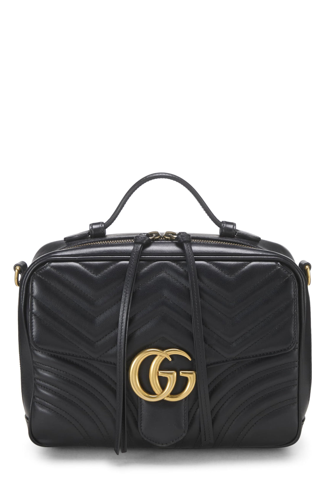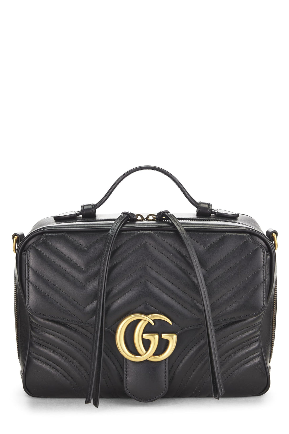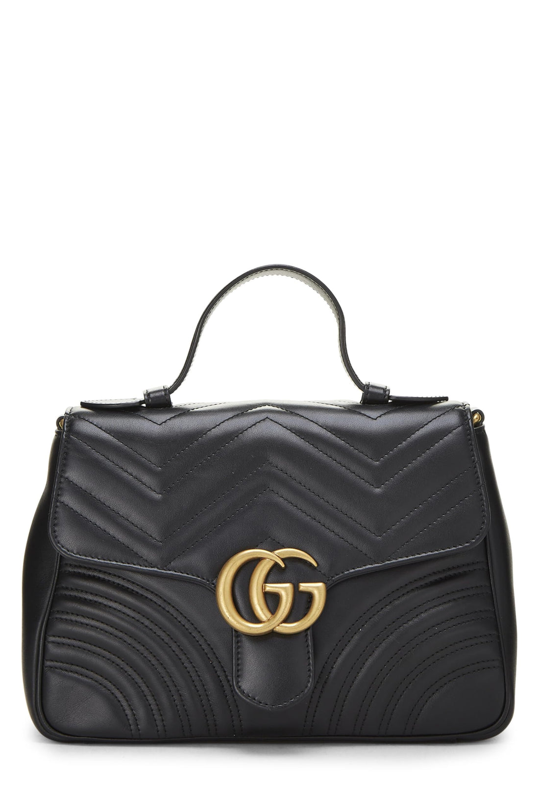 Gucci, Black Leather GG Marmont Top Handle Shoulder Bag Small, Black