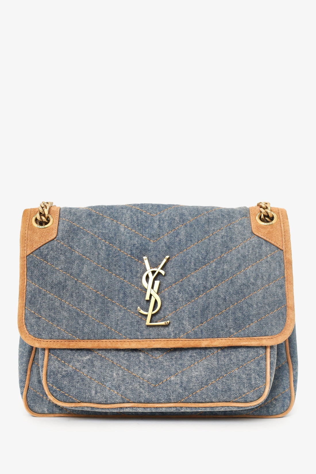 Estimated Retail Price: $4400 CAD PRODUCT DESCRIPTION Saint Laurent Blue/Brown Denim/Suede Medium Monogram Matelasse Niki...