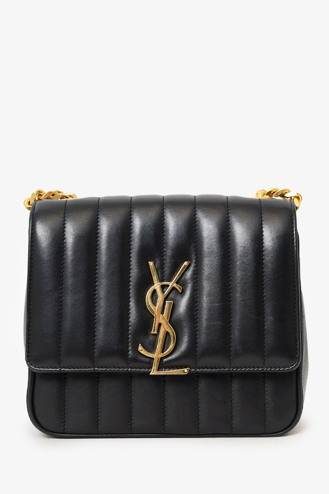 Saint Laurent Black Leather Medium Vicky Matelasse Shoulder Bag