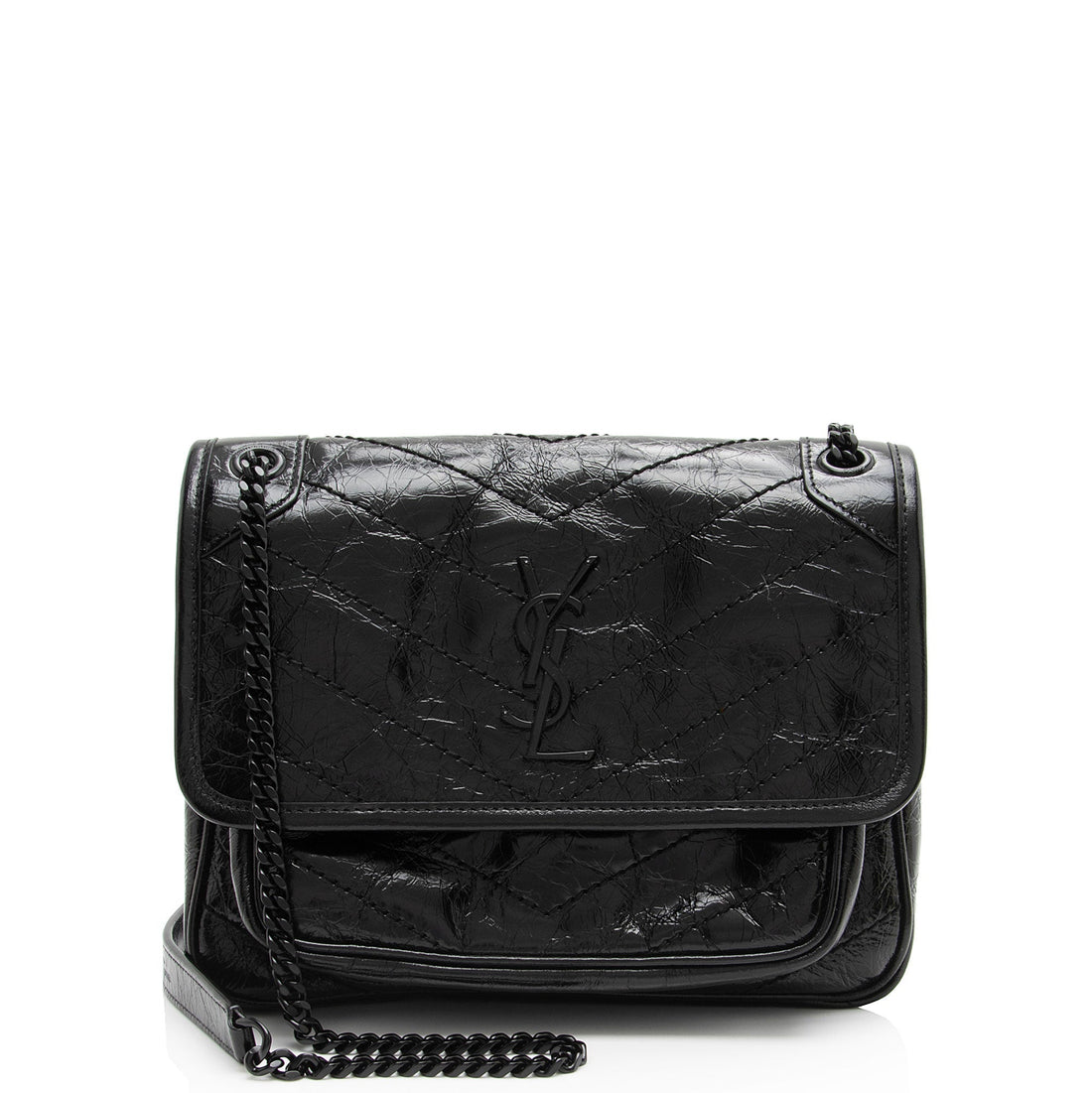 Saint Laurent Crinkled Calfskin Monogram Niki Baby Shoulder Bag (SHF-BRqPlH)