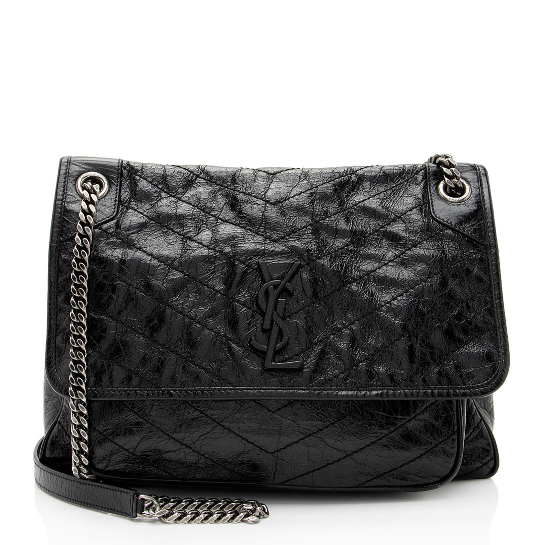 Saint Laurent Crinkled Calfskin Monogram Niki Large Shoulder Bag (SHF-0VXkR6)