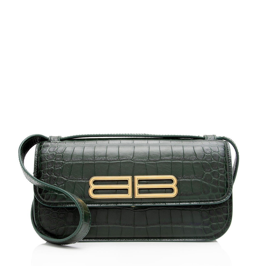 Balenciaga Croc Embossed Calfskin Gossip Small Shoulder Bag (SHF-Vvr5sm)