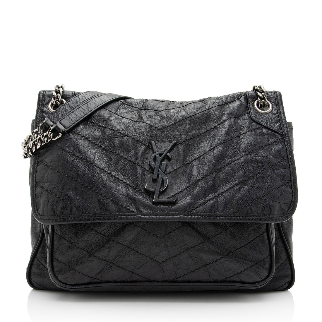 Saint Laurent Crinkled Calfskin Monogram Niki Medium Shoulder Bag (SHF-jZikJS)