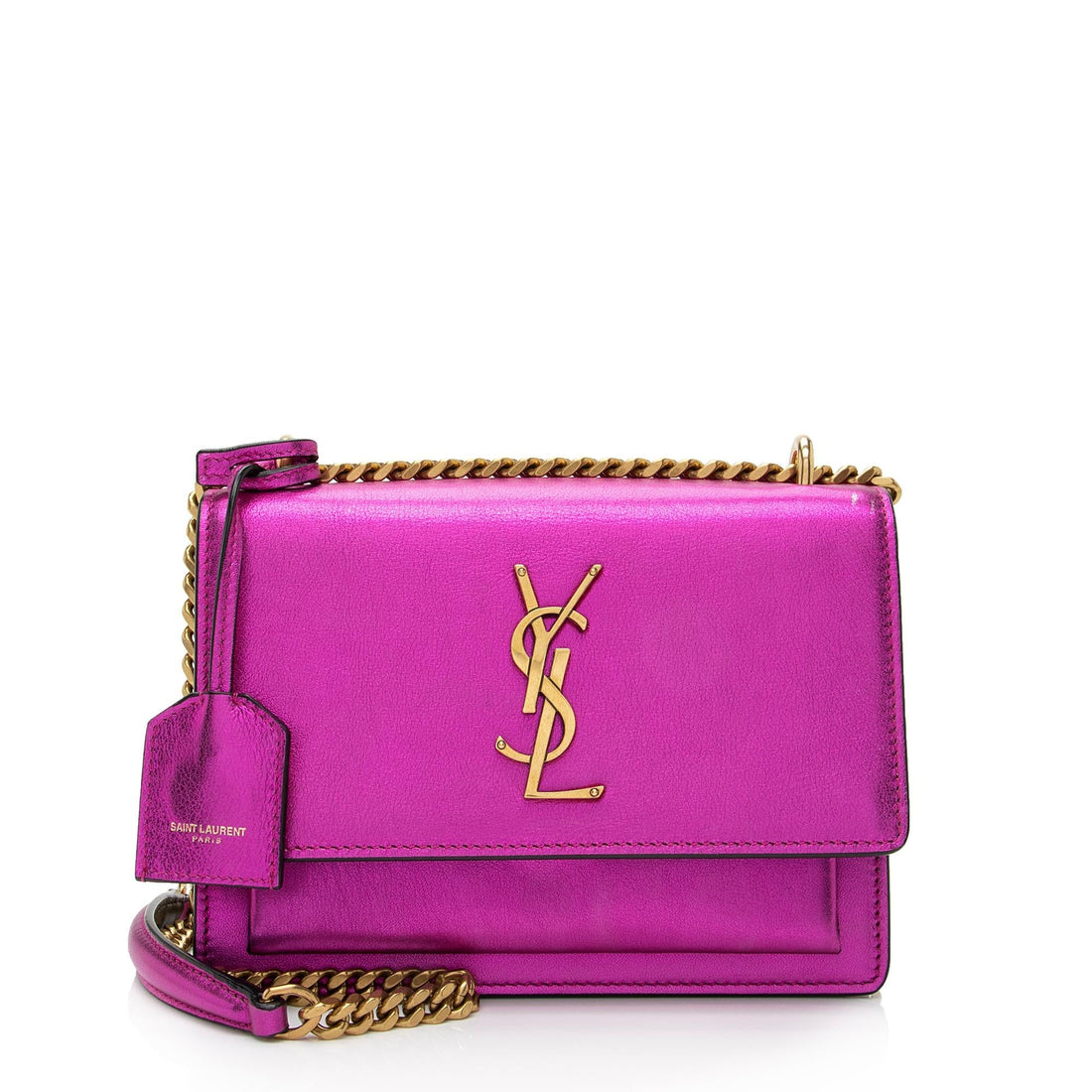 Saint Laurent Metallic Calfskin Monogram Sunset Small Shoulder Bag (SHF-UXPbK2)