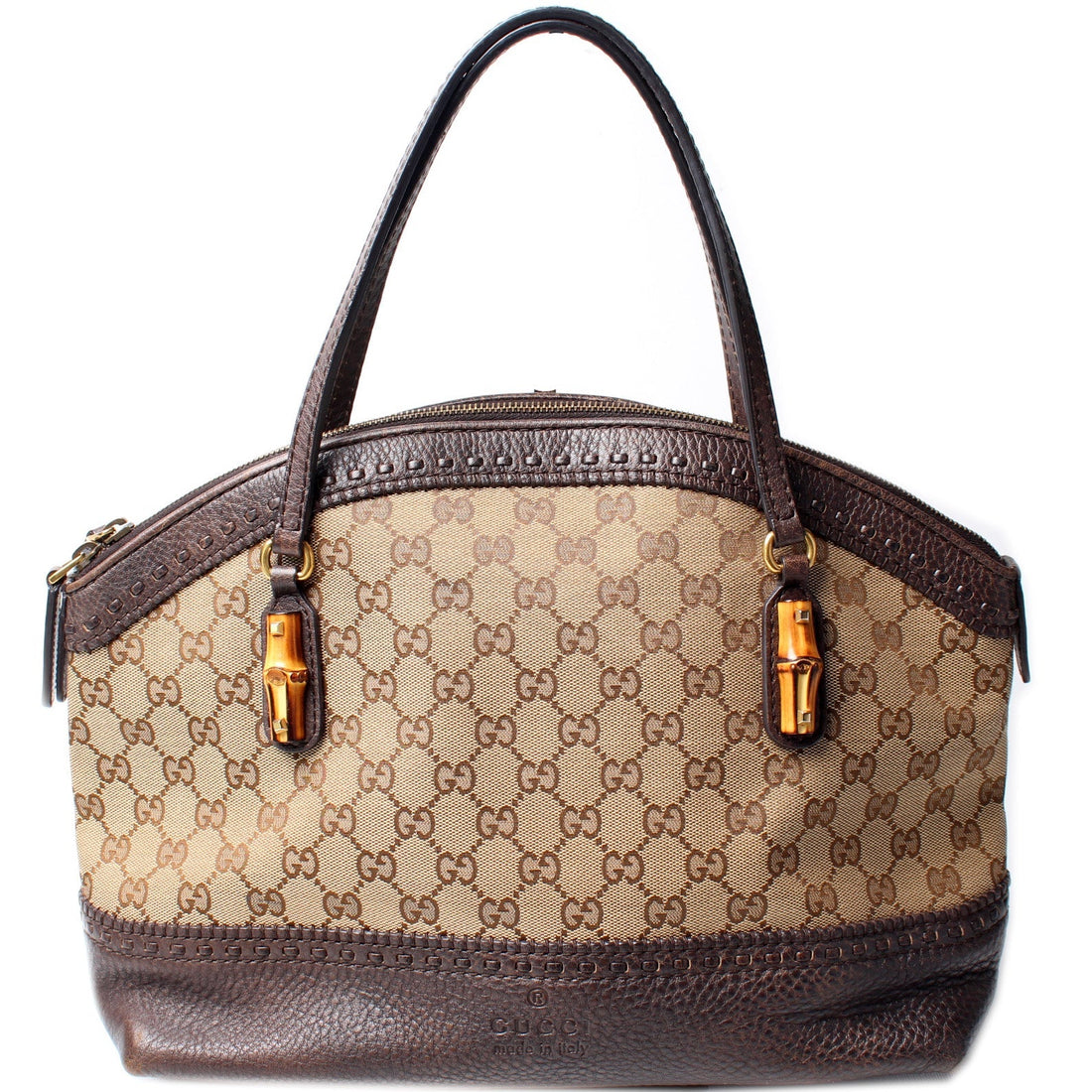 This Gucci GG Canvas Bamboo Shoulder Bag is guaranteed 100% authentic. Condition: Very Good Serial Number: 339002...