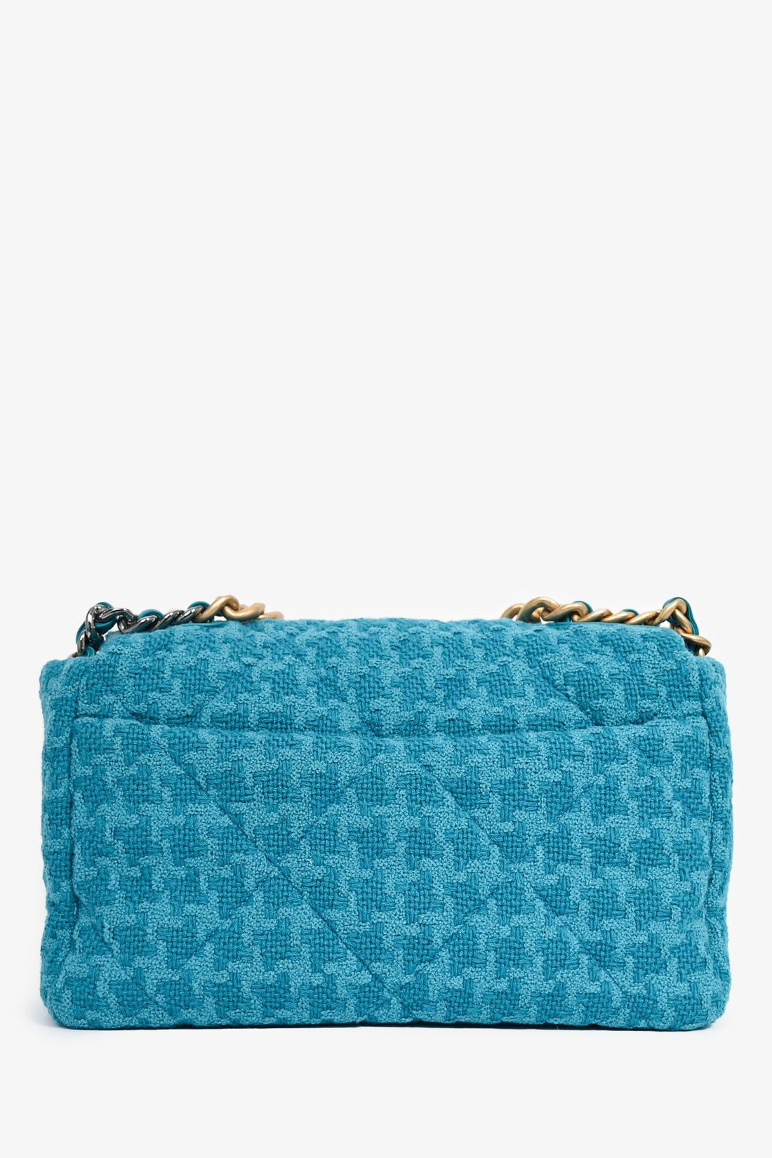 Pre-Loved Chanel™ Blue Houndstooth Tweed Large 19 Flap Shoulder Bag. Front fold-over flap with turn-lock...