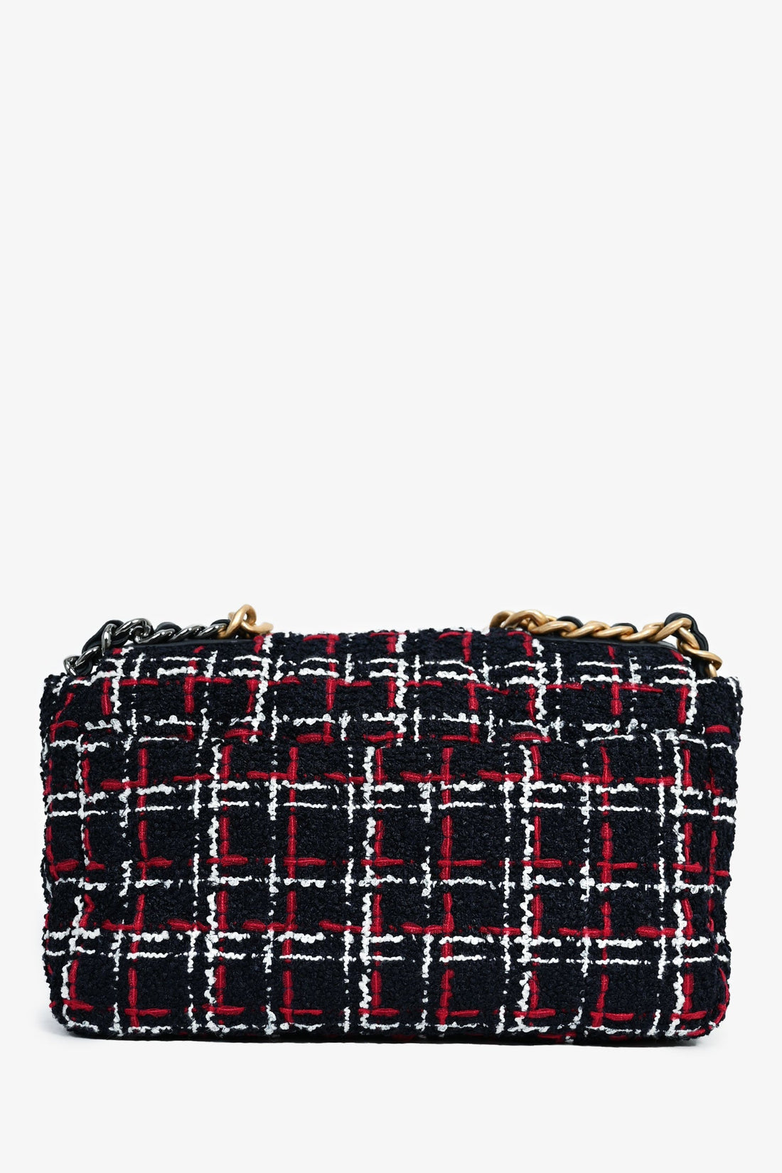 Pre-Loved Chanel™ Black/Red/White Tweed Medium 19 Flap Shoulder Bag