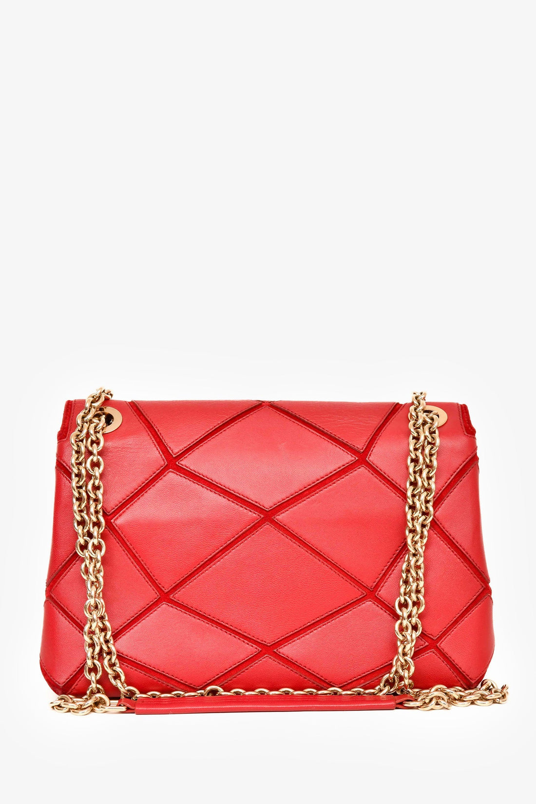 Roger Vivier Red Leather Geometric Patterned Shoulder Bag. Top clasp closure. Three interior compartments, one...