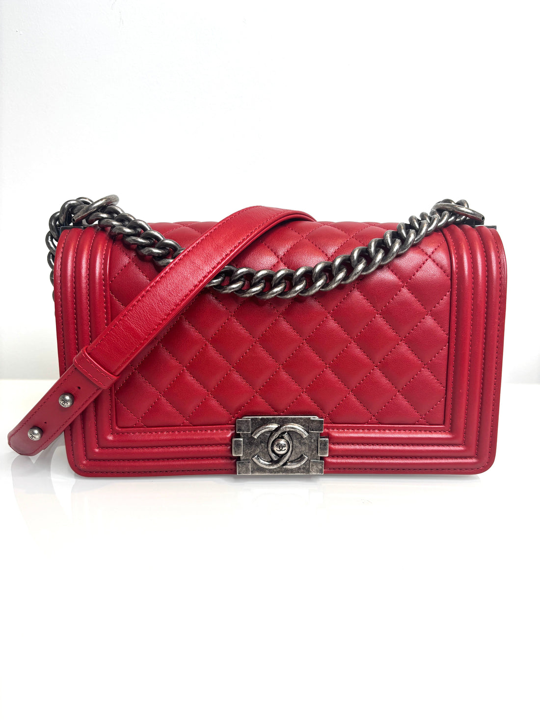 Chanel Medium Boy Bag Quilted Red Calfskin Shoulder Bag