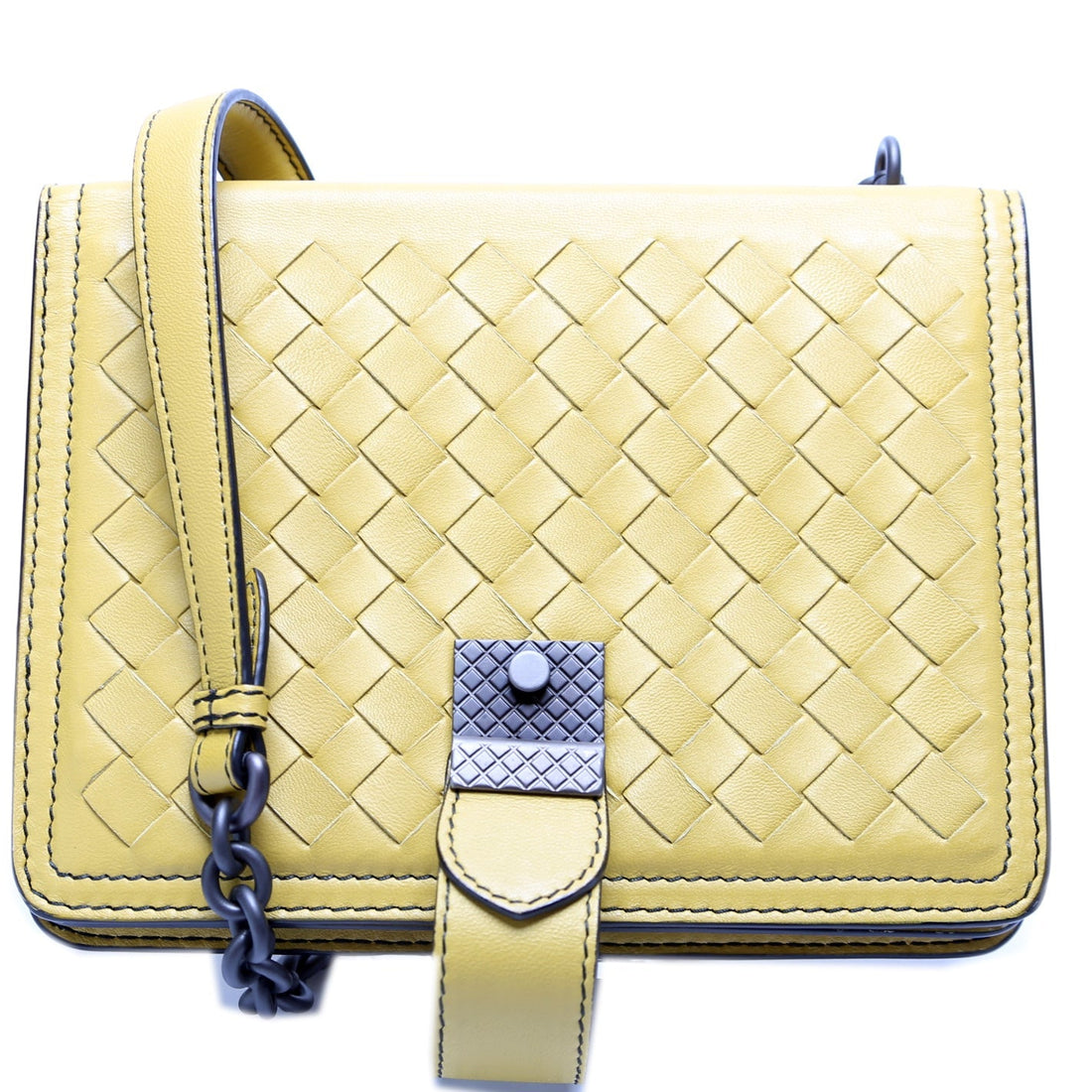 This Bottega Veneta Intrecciato Chain Shoulder Bagis eye catching bag. Condition: Very Good Color: Yellow ...
