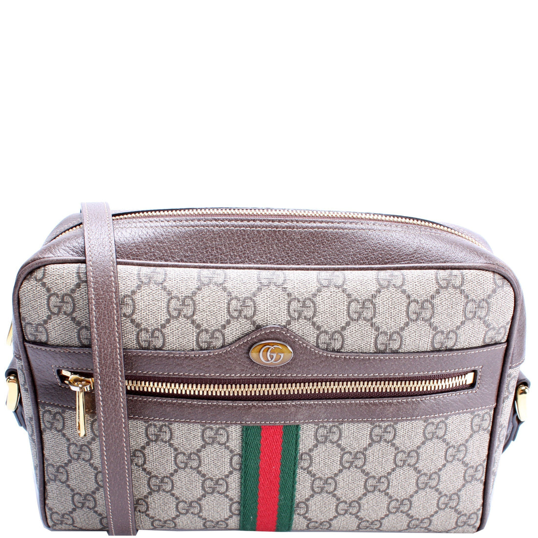 This Gucci Ophidia Crossbodyis eye catching bag. The exterior is in the classic Gucci GG Supreme...