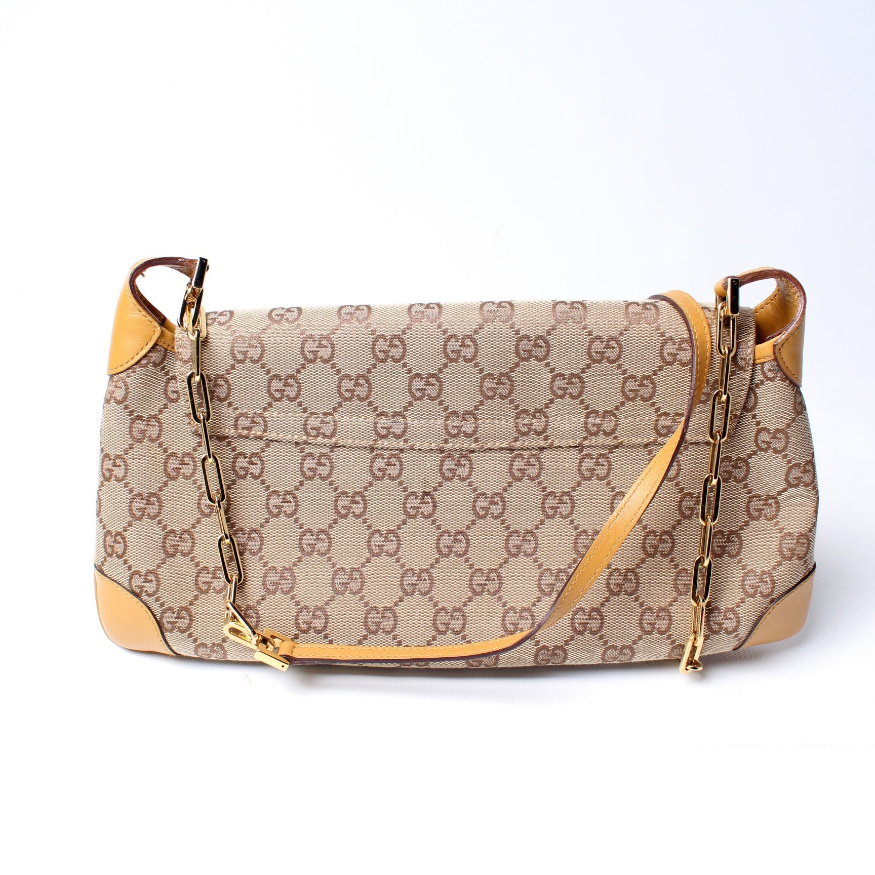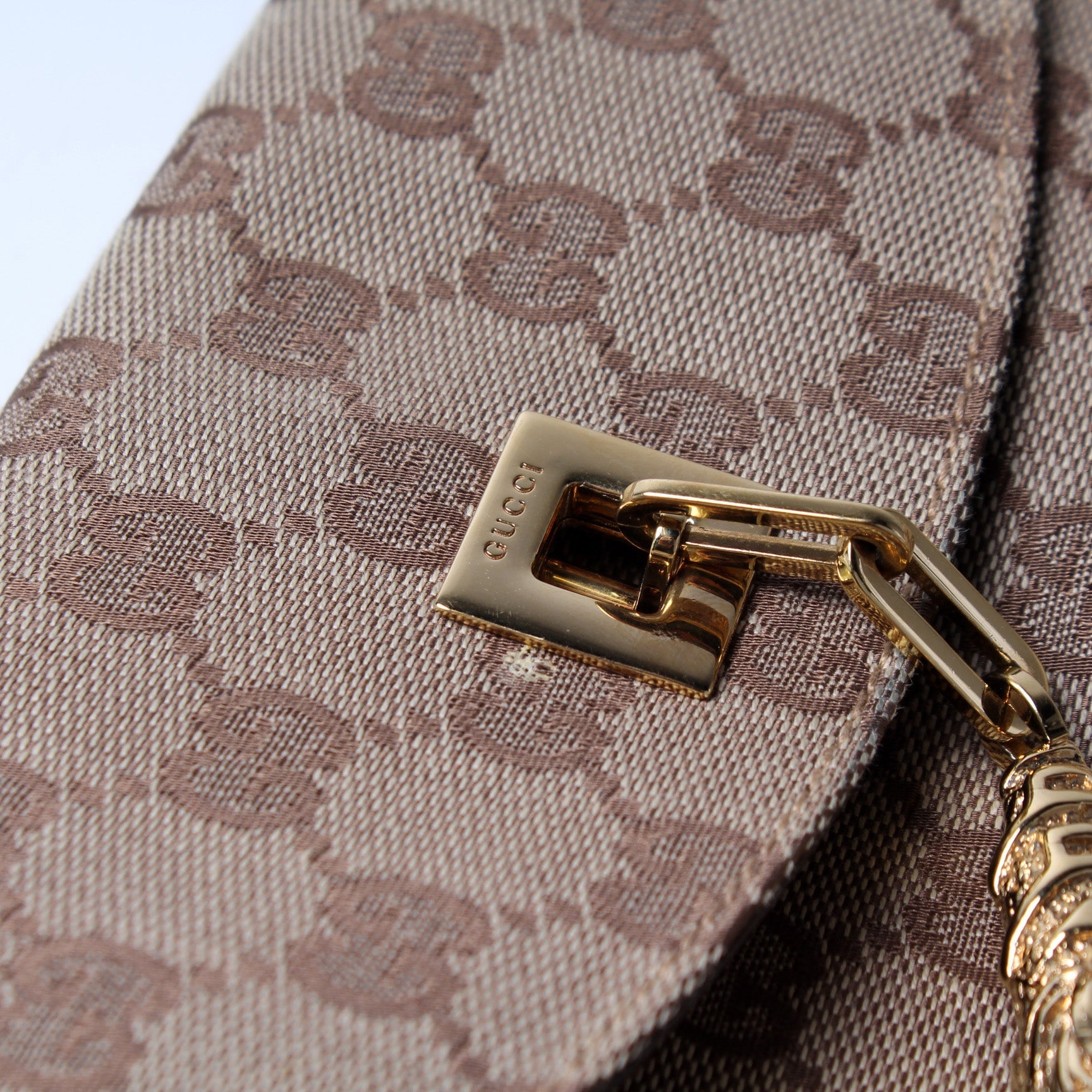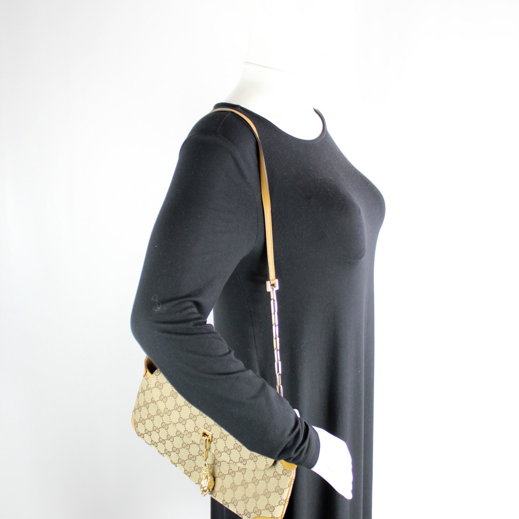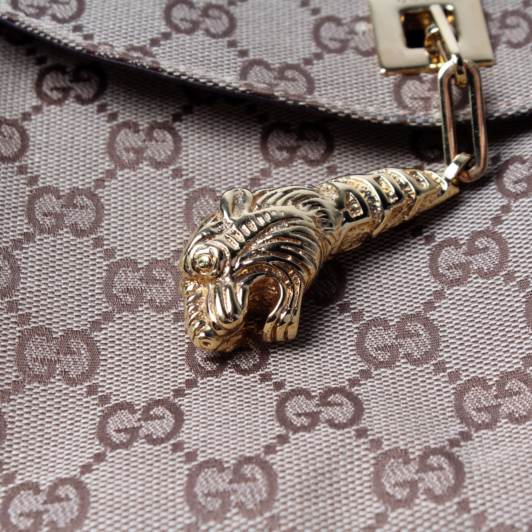 This Gucci GG Canvas Tiger Drop Shoulder Bagis eye catching bag. The exterior is in the classic Gucci GG canvas.