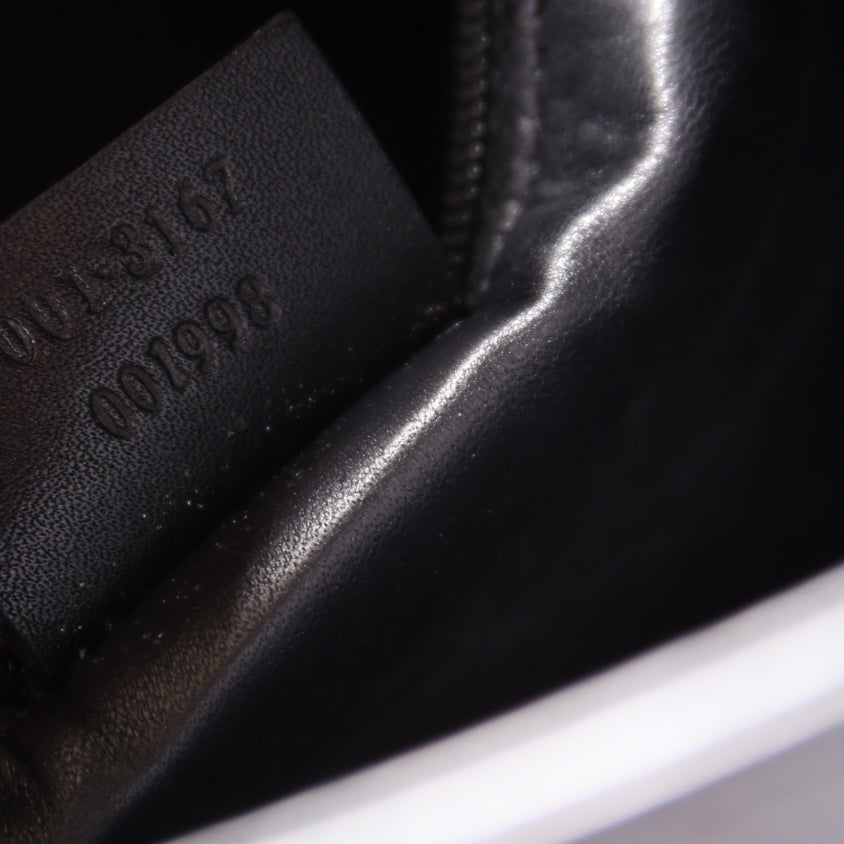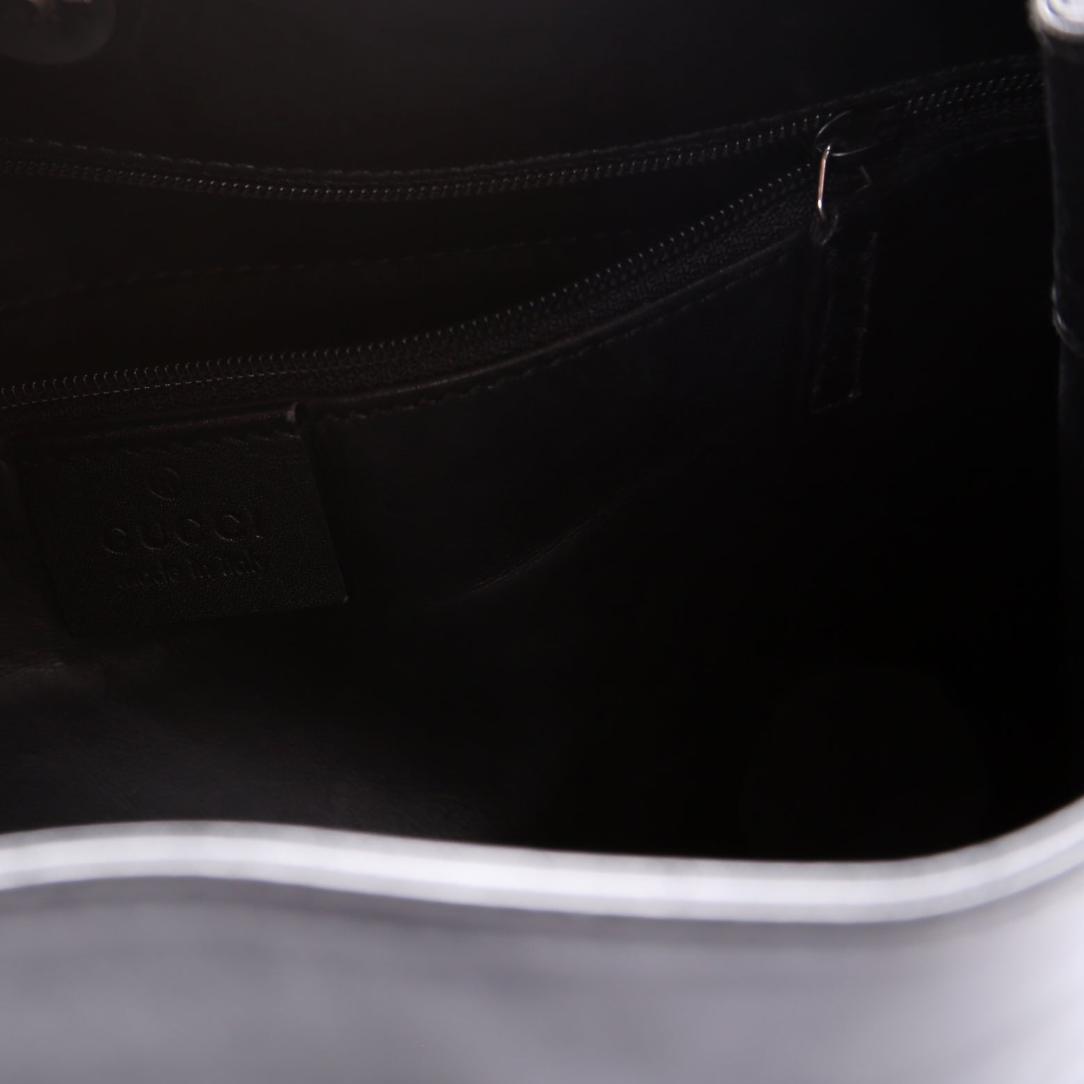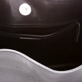 Interior: The interior shows light wear throughout. The interior features one zipper pocket.