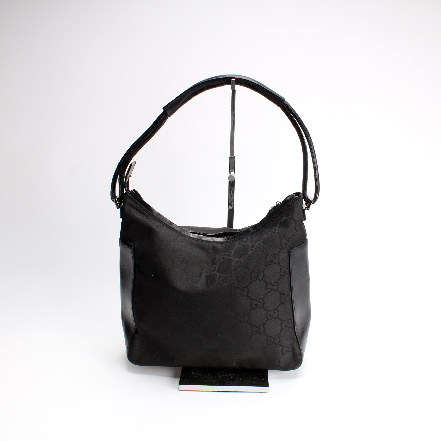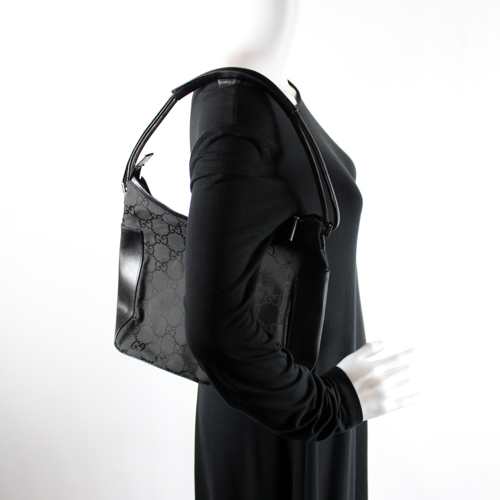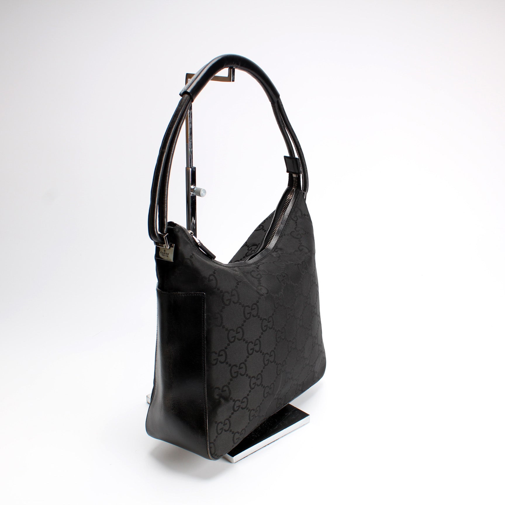 This Gucci GG Nylon Shoulder Bagis eye catching bag. The exterior is in the classic Gucci GG canvas.