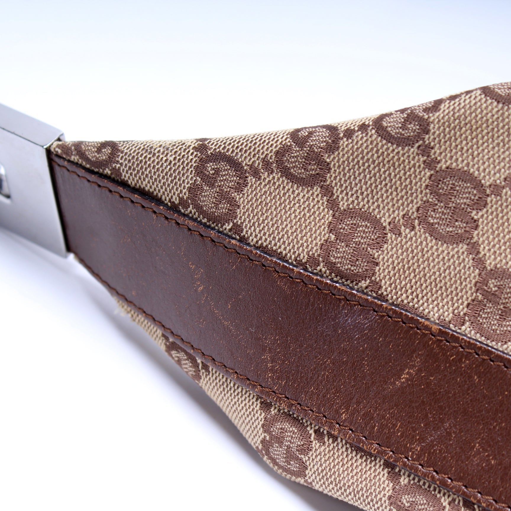 This Gucci GG Canvas Clasp Hobois eye catching bag.