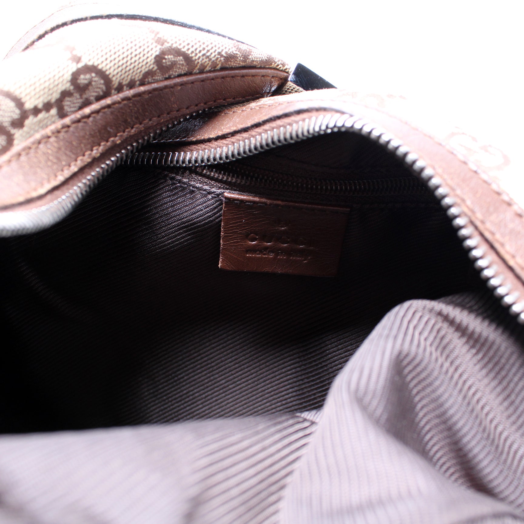 Interior: The interior is clean and free of rips or tears. The interior features one zip closure pocket.
