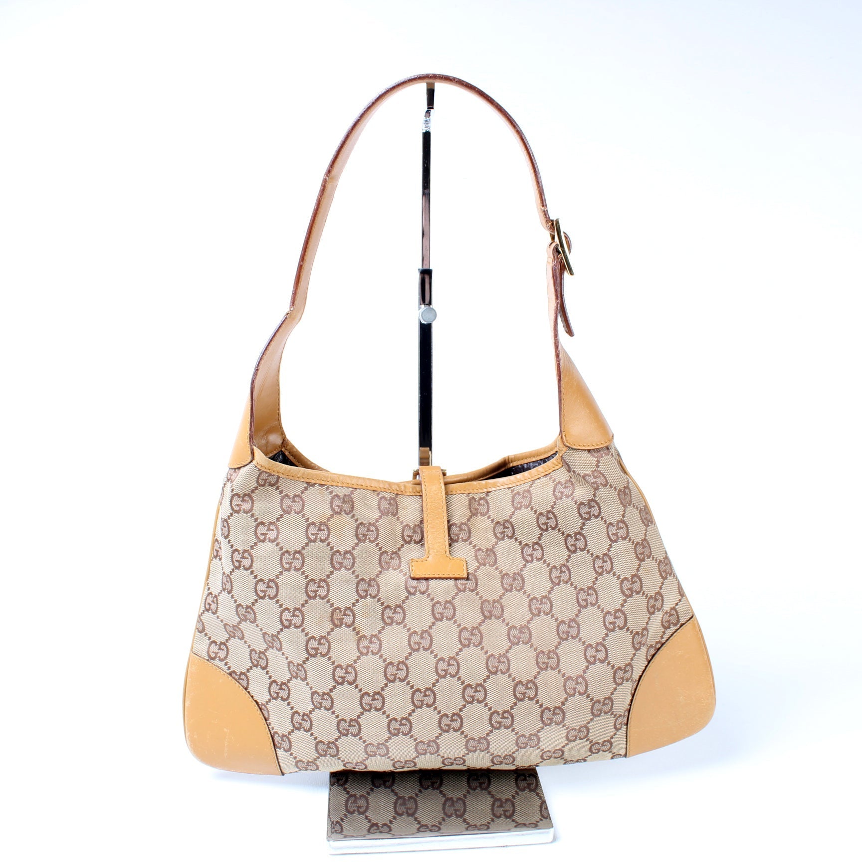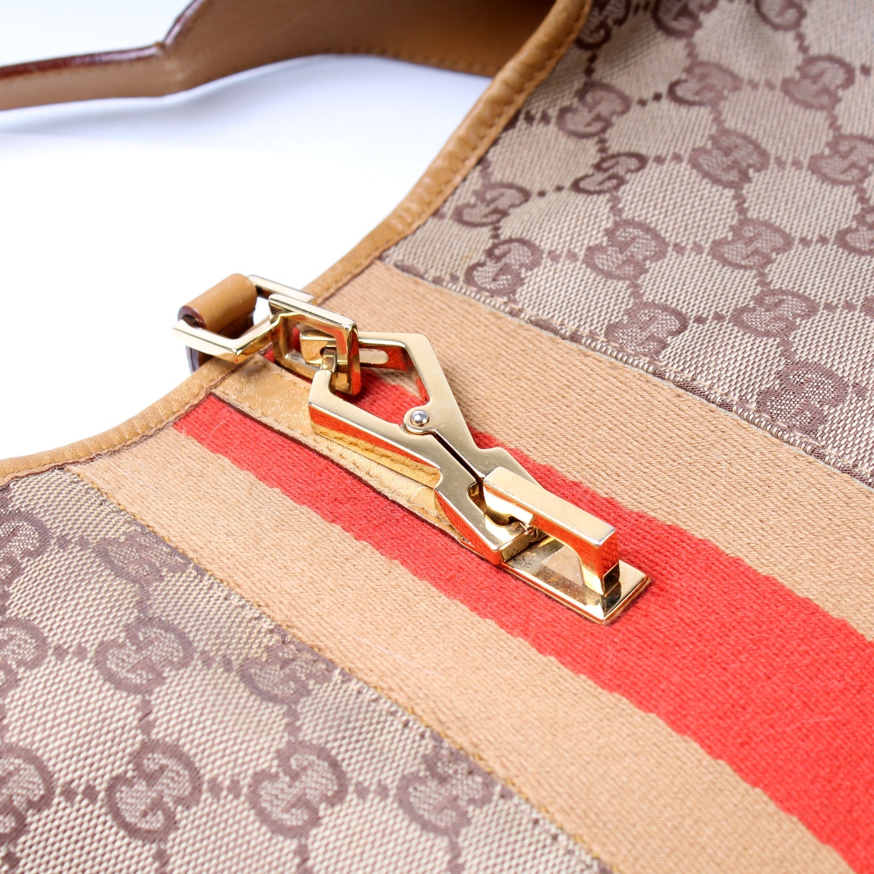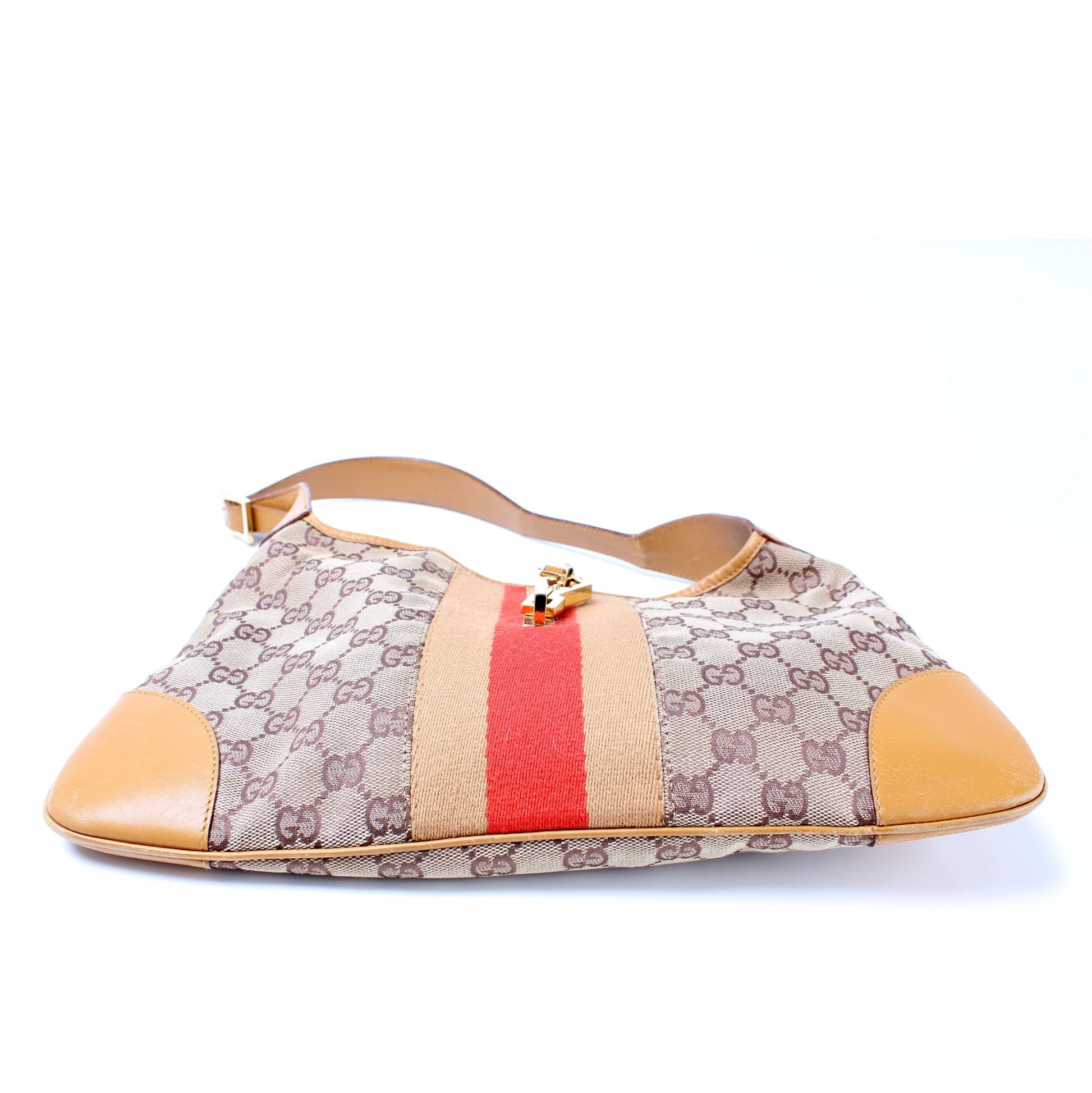 This Gucci Jackie Hobois eye catching bag. The exterior is in the classic Gucci GG canvas.